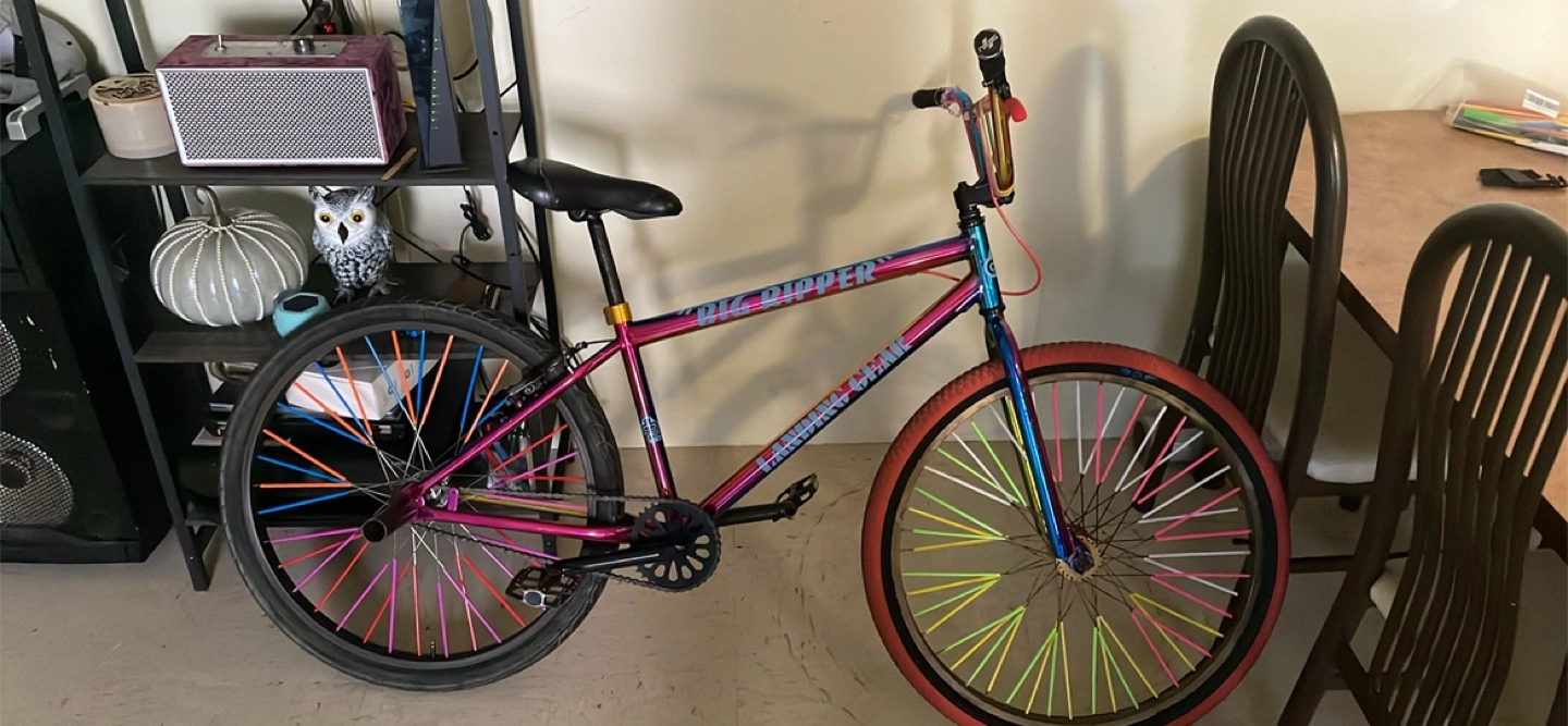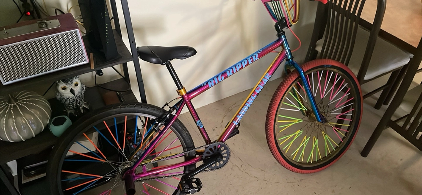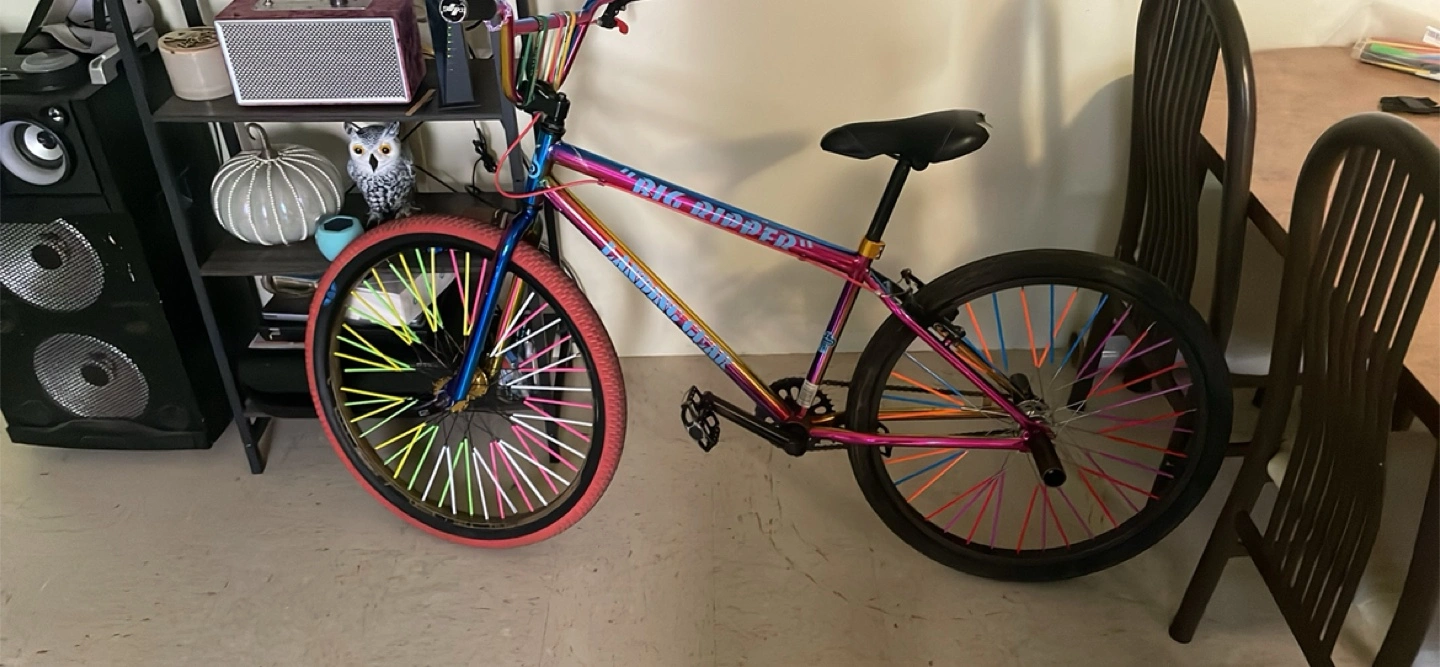 Selling a used SE Bikes Big Ripper. It is in good condition. The bike has rainbow spokes and a black seat. Feel free to message me if you're interested!
