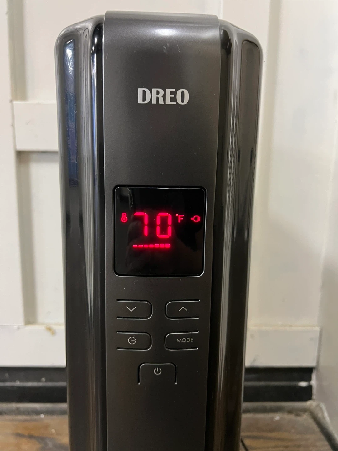 Selling a Dreo space heater in black. It's in good condition and ready to keep you warm! It features a digital display and easy-to-use controls