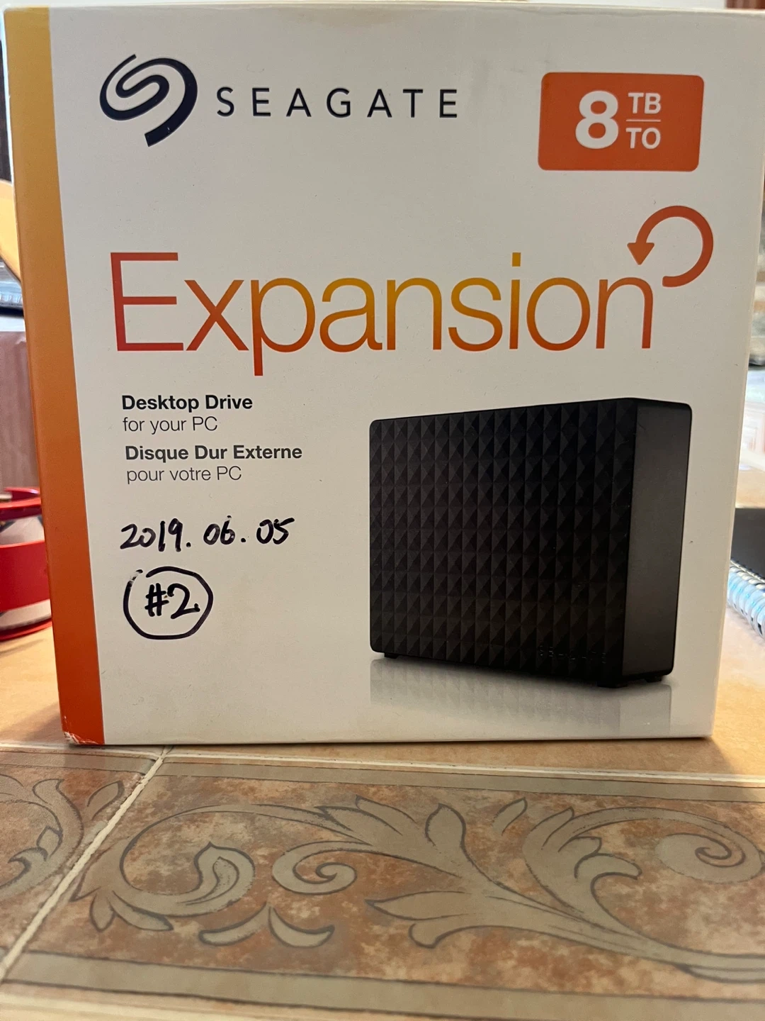 60Selling a Seagate Expansion 8TB desktop external hard drive. It's a desktop drive for your PC, also "Disque Dur Externe pour votre PC". The manufacturing date is 2019 June 05