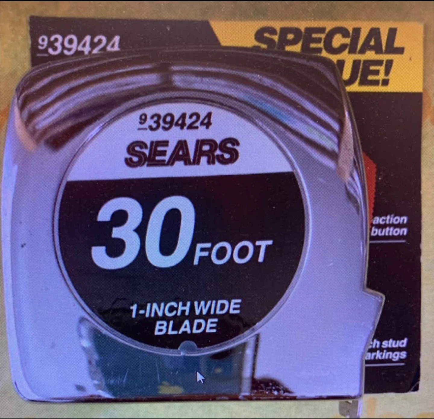 Selling a Sears tape measure. It's 30 feet long and has a 1-inch wide blade. Note: I have 3 of them new in packages. - The listing price is for one but I’ll make bulk deal $45 FIRM for all 3