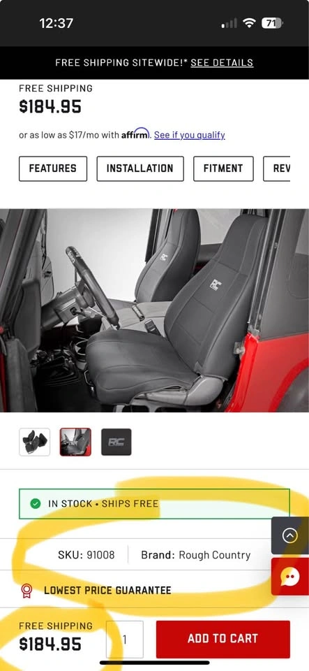 - New in box, never used, opened for picture - Pickup in Wilmington, cash preferred - Rough country, Jeep wrangler (1987-90), water resistant, neoprene, front & back seat covers - Retail for $185 + tax - Pictures to show SKU & brand are same