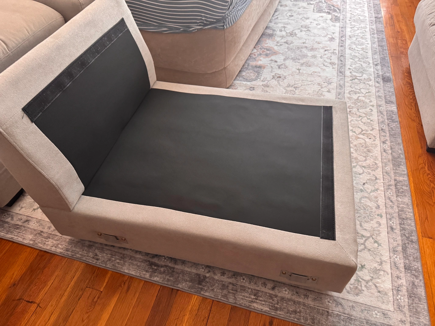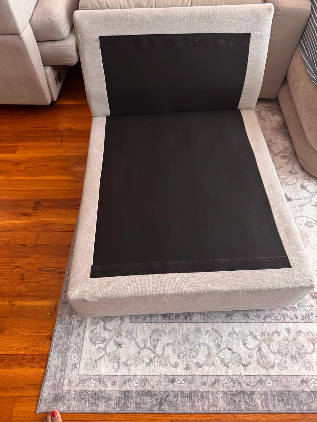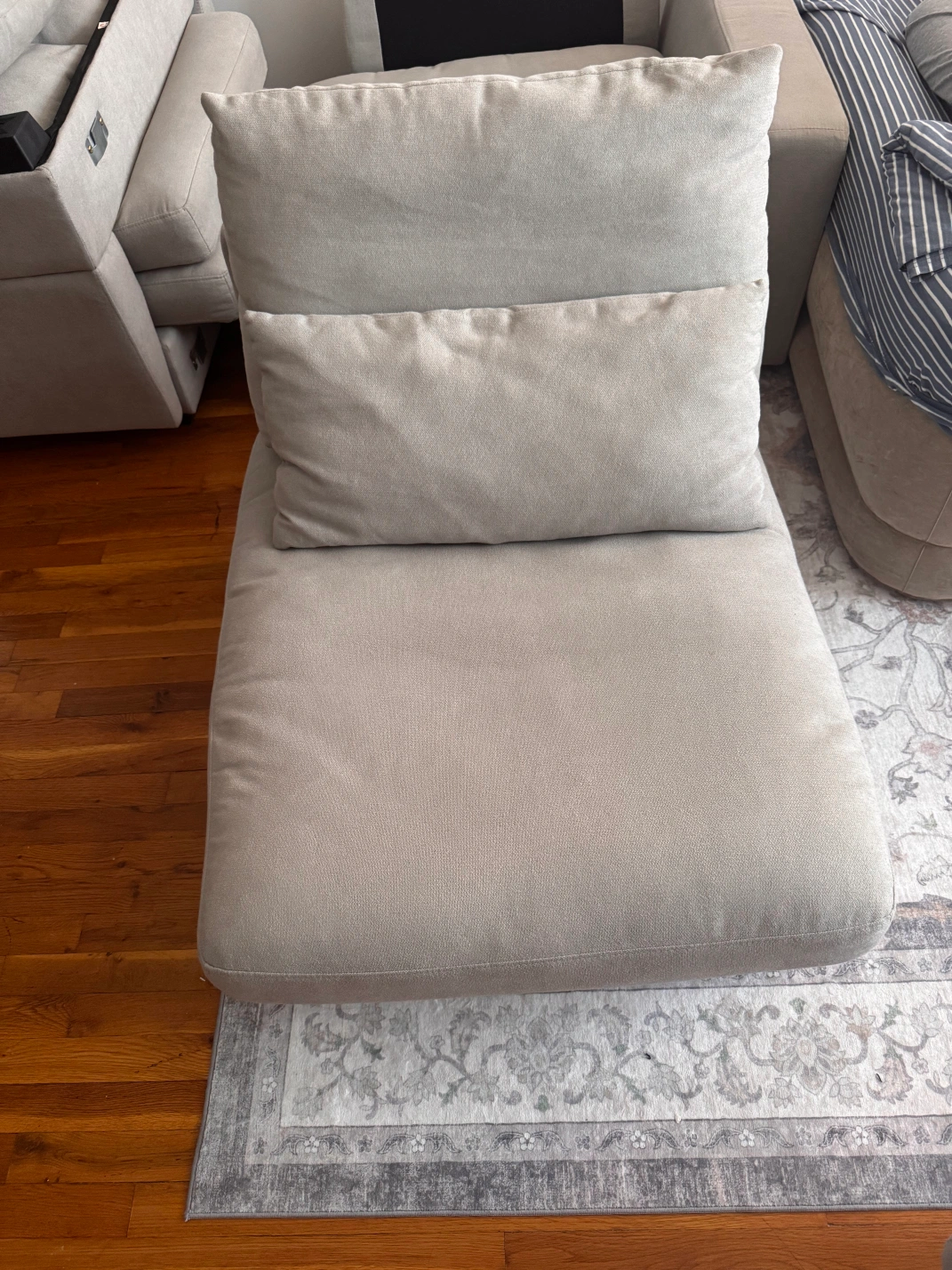 130" sectional Sofa couch for living room, large 4 seat L-Shape modern sofa couch with convertible ottoman, feather filled reversible sofa couch with waist pillows, light grey. One year old and must pick up.