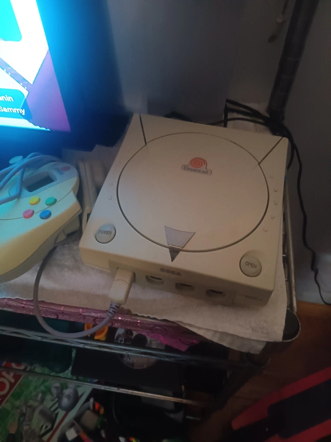 Selling a used Sega Dreamcast console. It's in good working condition and ready for some retro gaming fun! Comes with a controller and a game.
