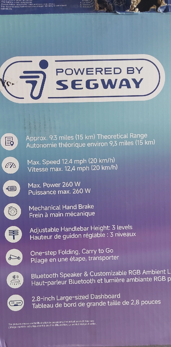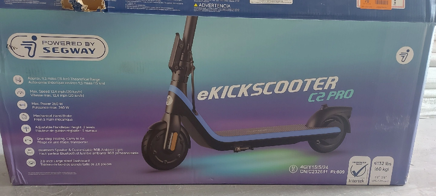 SEGWAY C2 Pro Kids Electric Scooter w/7.5 mi Max operating Range & 12.4mph Max Speed - Black Key Features 7" Inner Hollow Shock-Absorbing Tires 12.4 MPH Max Speed 3 Riding Modes: Standard, Sport, Power-Assisting Integrated Bluetooth Speaker 3'5" - 5'6" Required Height 6+ Recommended Age 132 lbs Max Payload Black/Blue Finish Used like NEW Certified with WARRANTY EASY FINANCING AVAILABLE