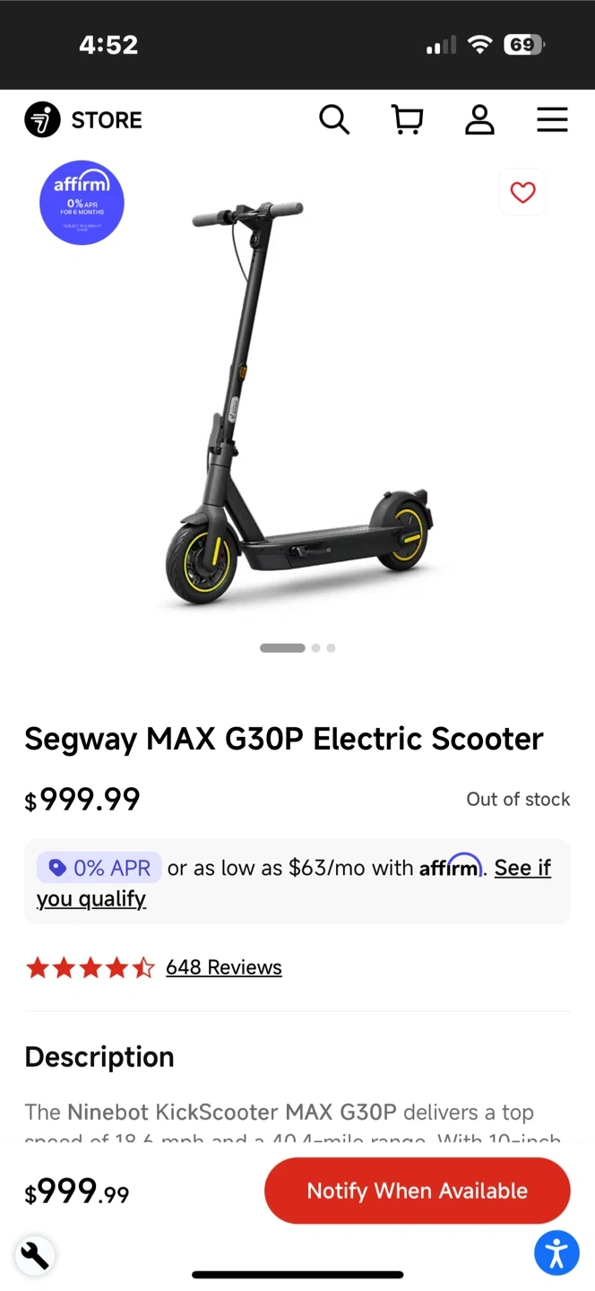 Selling a Segway Ninebot MAX G30P electric scooter! This scooter delivers a top speed of 18.6 mph and a 40.4-mile range with 10-inch