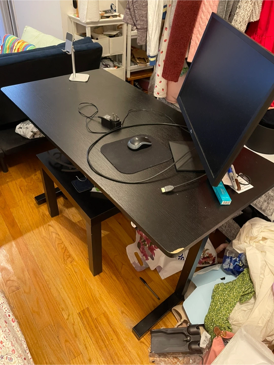 Selling a black computer desk in like-new condition! Perfect for working on it with a laptop or pc.