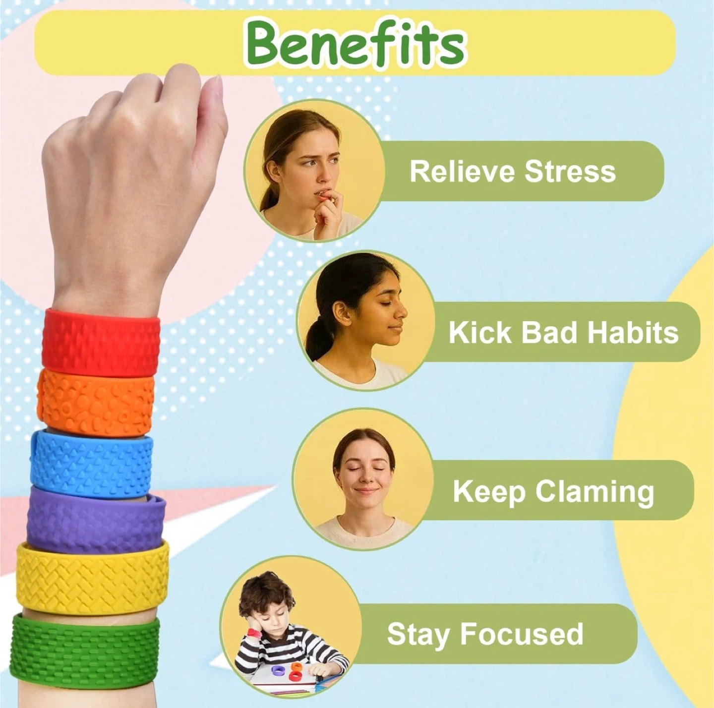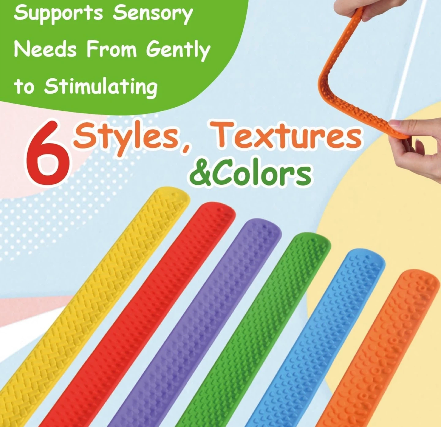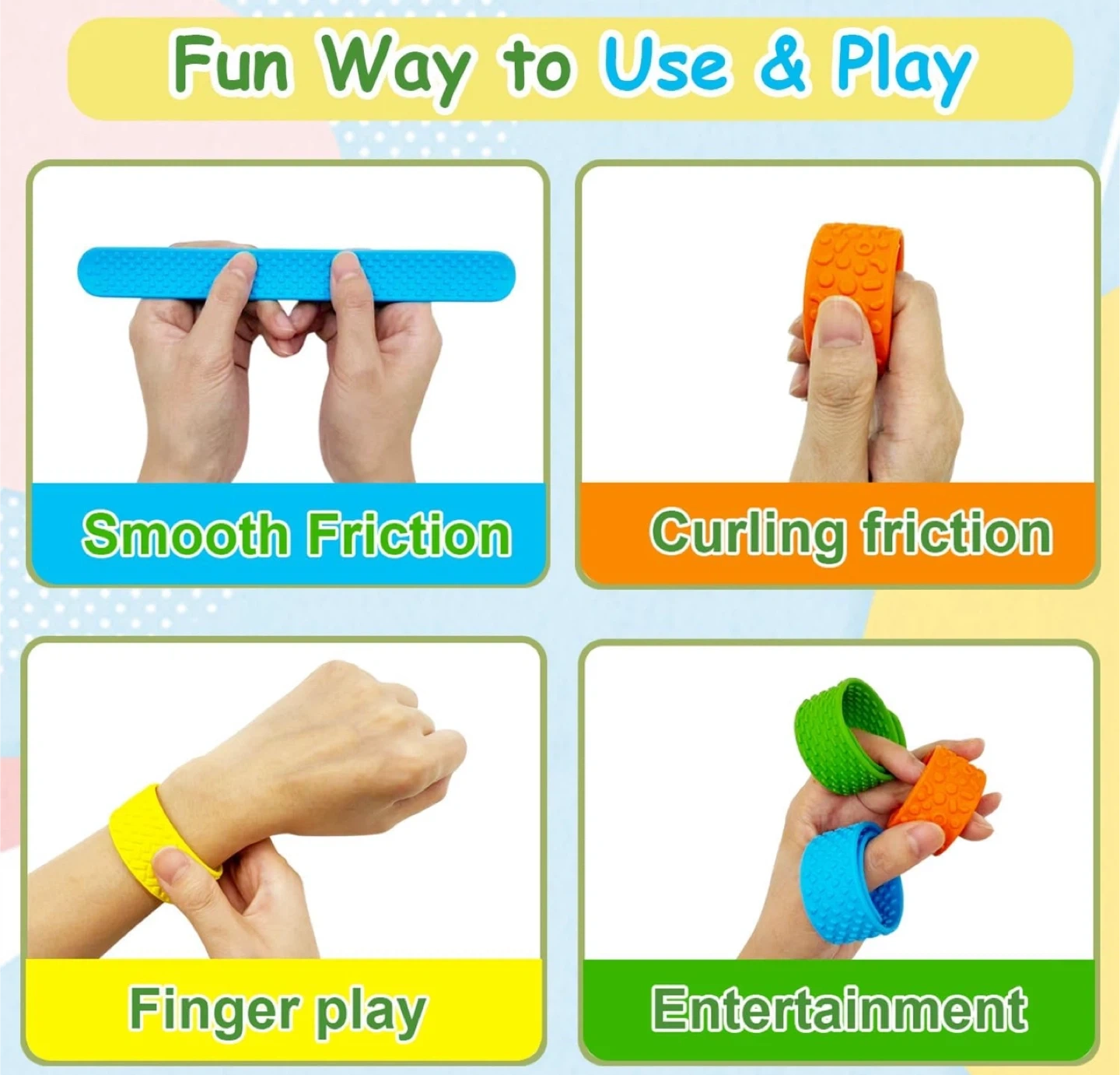 172Fidget Toys Slap Bracelets, Textured Silicone Sensory Toys for Kids, Teens & Adults - Calming Tools for Autism, ADHD, Anxiety & Stress Relief - Ideal for Classroom Rewards, Party & Special Needs Gifts (6Pcs)