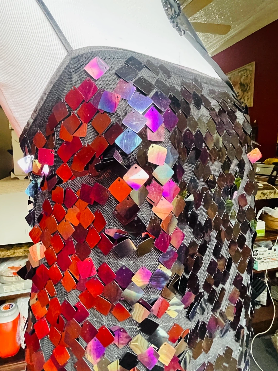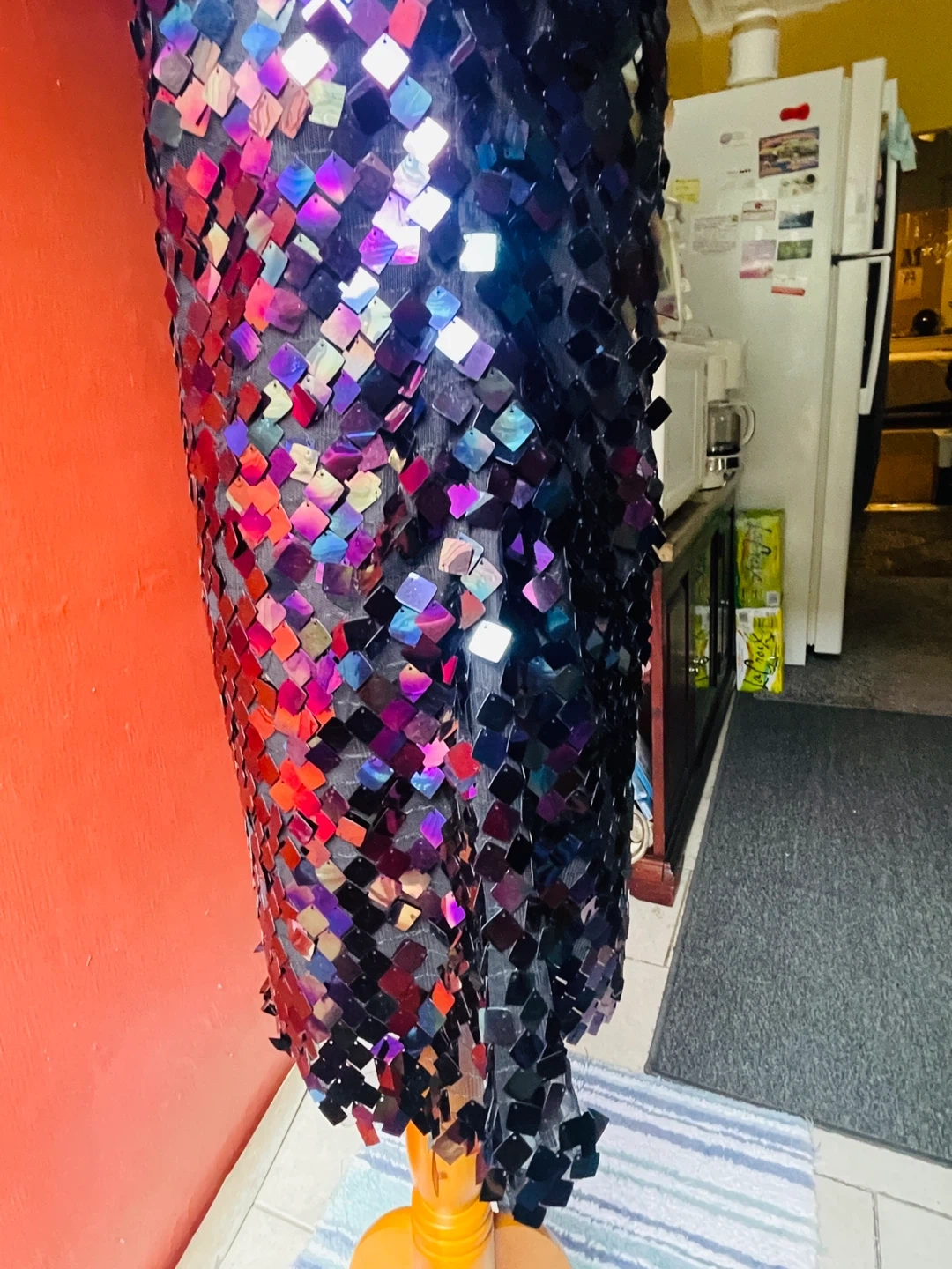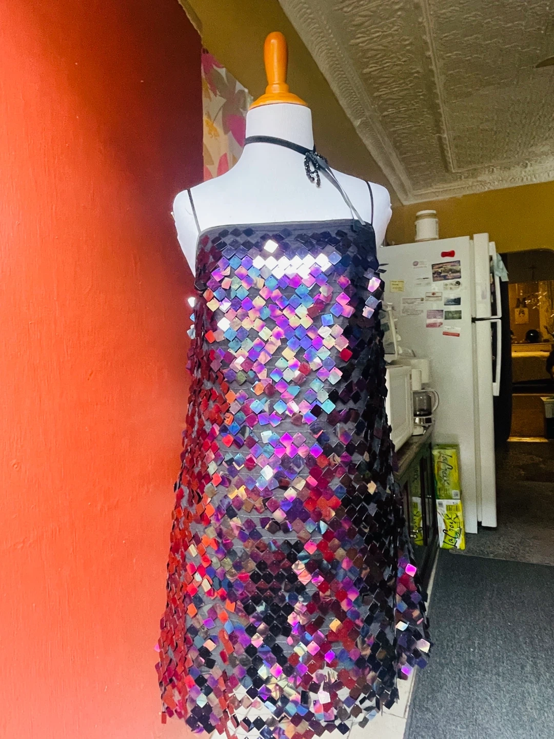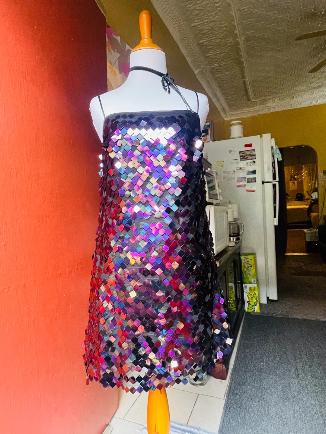 26This fun sequin mini dress is perfect for a night out or a special occasion! The sequins catch the light beautifully, creating a dazzling effect. It measures about 33 inches in length. Add some sparkle to your wardrobe!