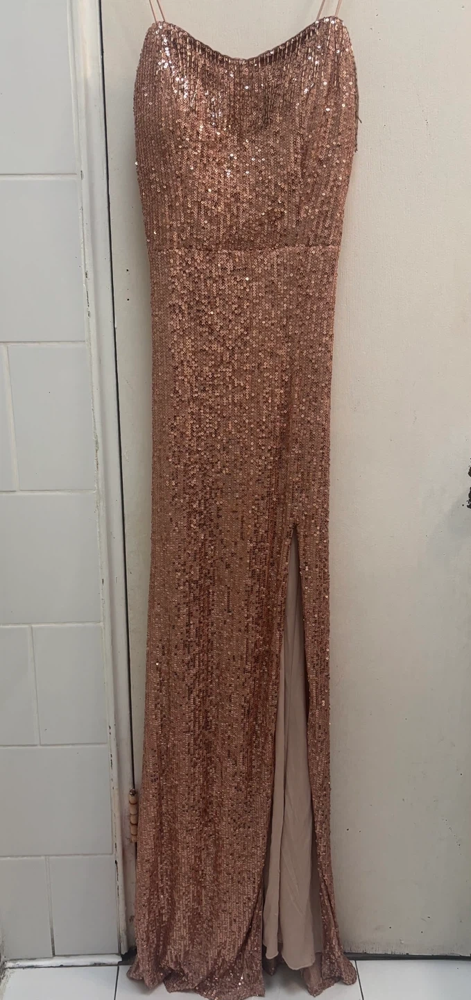 Selling a beautiful rose gold sequin formal dress! It has a slit on one side. Perfect for a special occasion