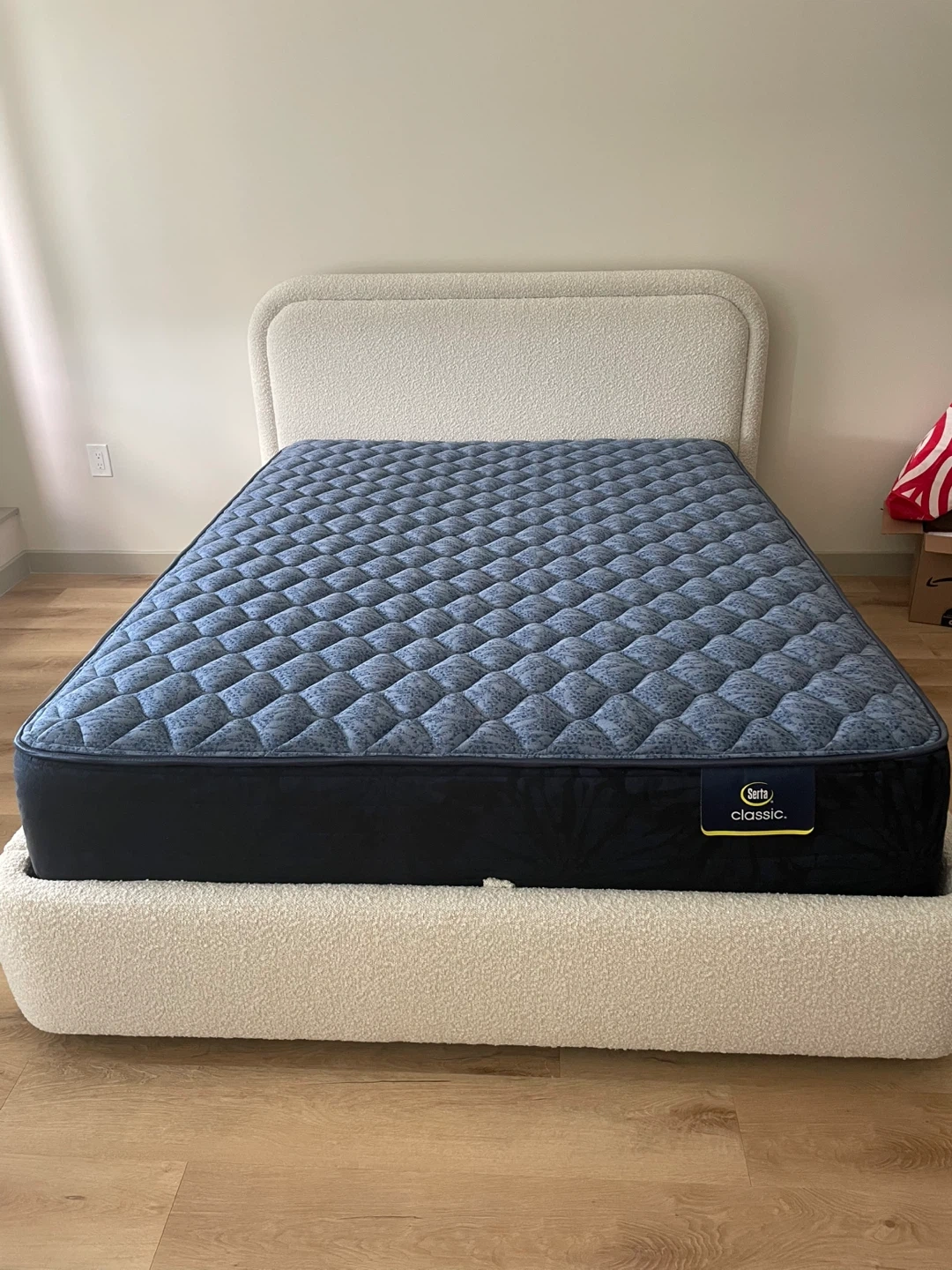 60Selling a Serta Classic 12.5" Firm Queen Mattress. It's in excellent condition and ready for a new home! Valued at 1799!! Featuring a soft, breathable cover, PillowSoft® Aire foam, and an 800-density coil support system, this mattress helps you sleep comfortably and wake ready to ease into your day. With 3 zones for lower back support, this mattress balances cool breathability with responsive support for a classically comfortable rest.