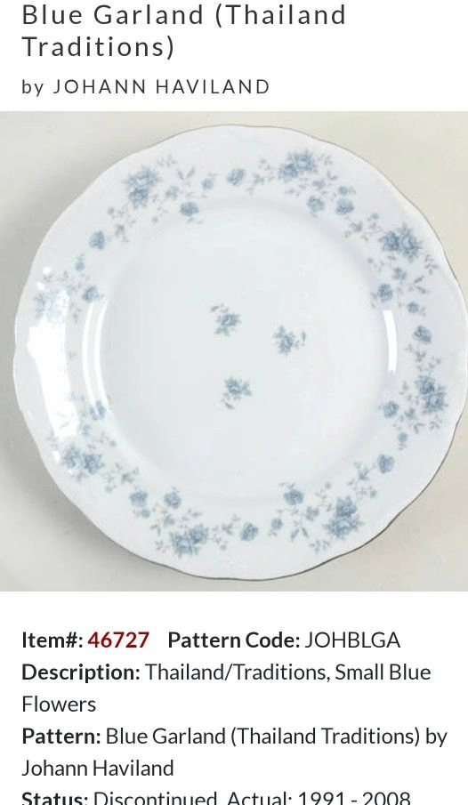 25Johann Haviland, Traditions fine porcelain china, blue garland pattern dinnerware. Pick up in the Town of Newburgh, NY only!!! Color: White. Type: Dinner set. Brand: Johann Haviland, Traditions fine porcelain china, blue garland pattern dinnerware