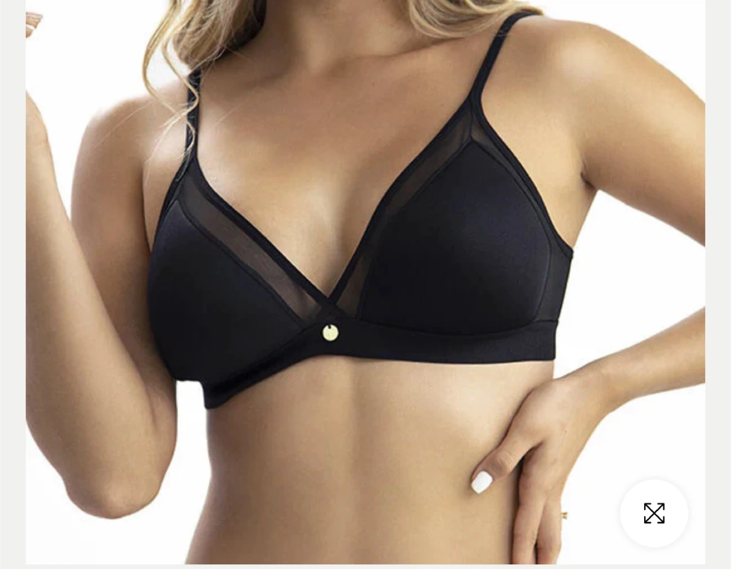 This is a stylish set black bralette featuring mesh detailing. It looks comfortable and supportive, perfect for everyday wear or lounging around