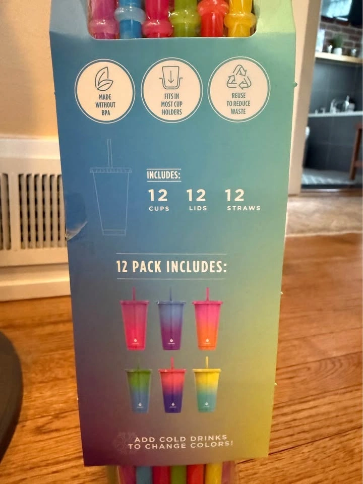 New. 24 ounce, pack of 12, color changing tumblers with straw sets. Any icy beverages change the color of the tumbler. Great for crafters out there or just a large family. Pick up by Irving Park and Cumberland