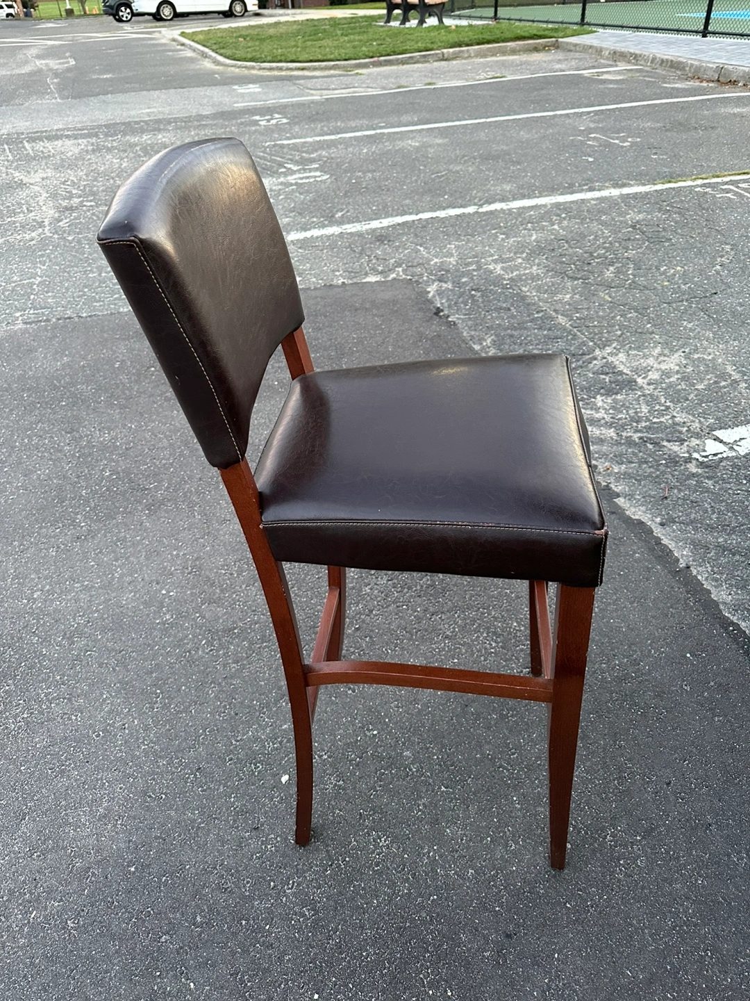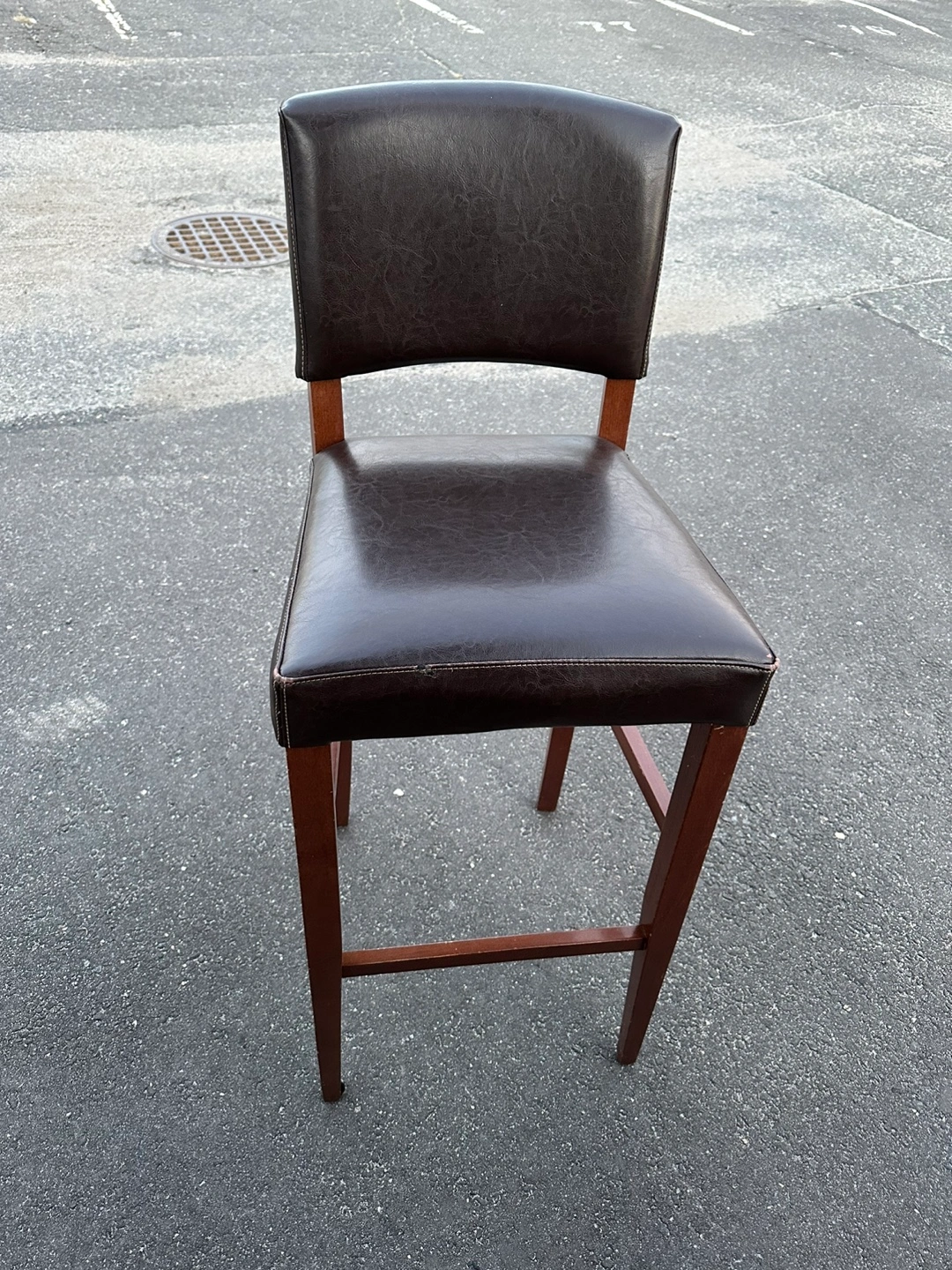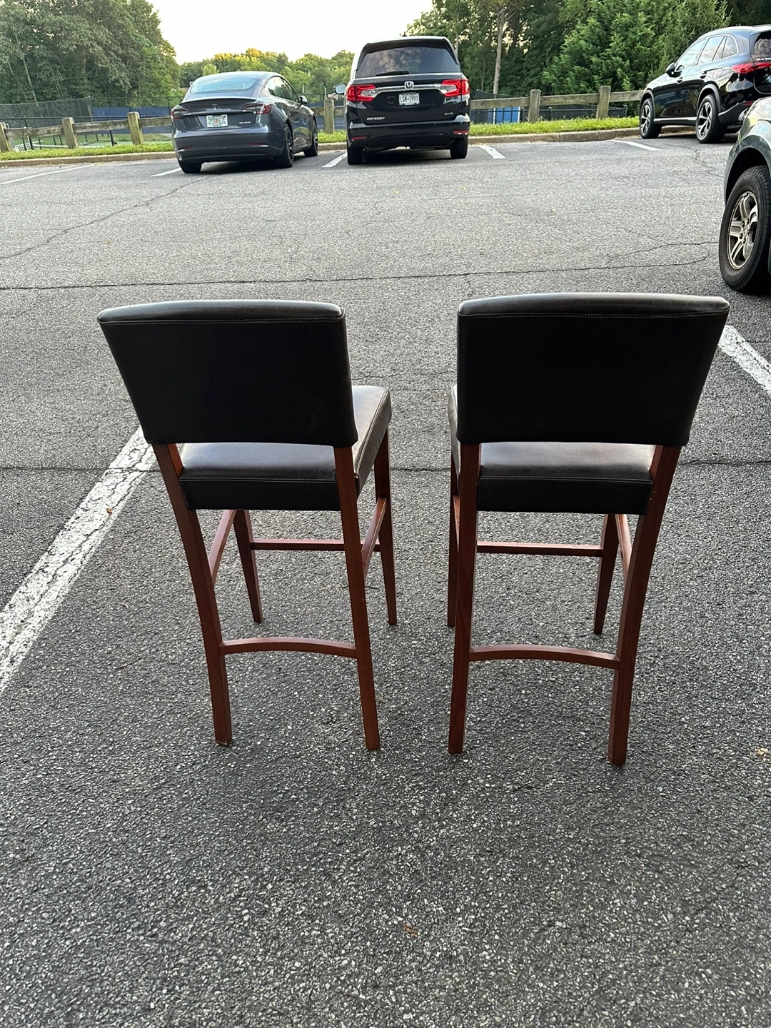 75Selling a set of two bar stools! $45 each and $80 for the pair. Or make me an offer. They feature a brown leather seat and backrest and footrest, complemented by a wooden frame. They're in good condition and ready to add a touch of style to your kitchen or bar area