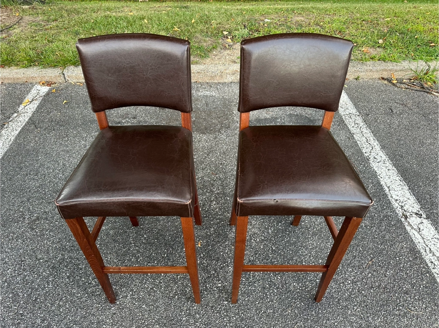 Set of 2 Brown Leather Bar Stools (price per chair)