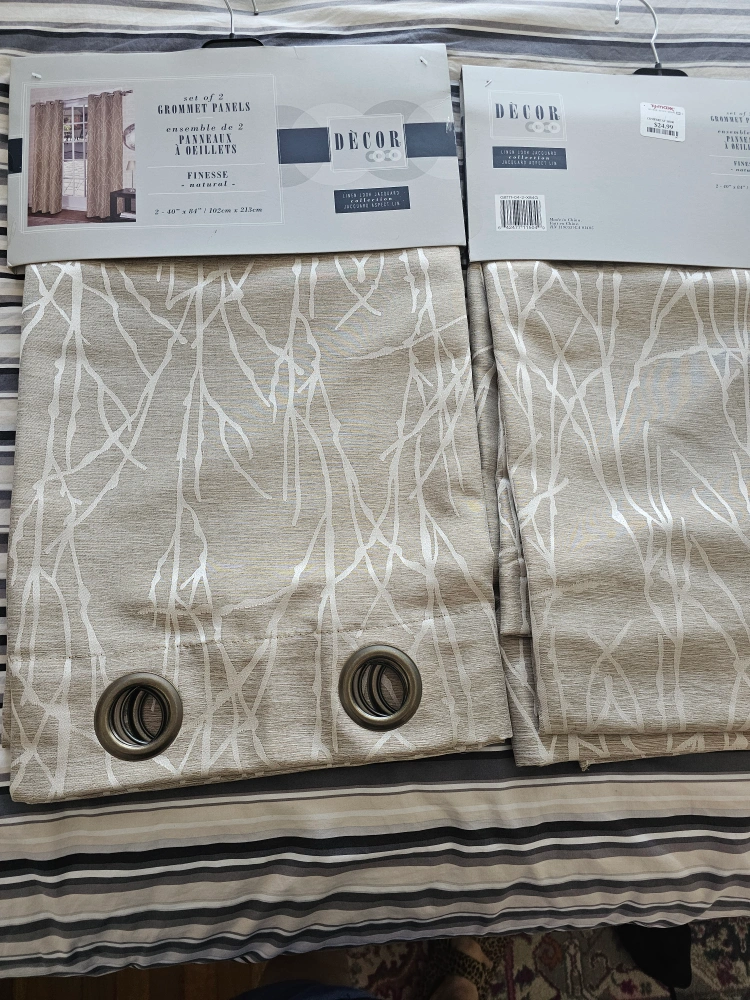 Selling a Brand New set of two Decor grommet panels in natural color. Each panel measures 40" x 84" (102cm x 213cm). These are finesse panels. They were originally bought for $24.99. I have 2 set of two panels each. Each set $20 or take both set for $30. Pickup in Whitestone, Queens.