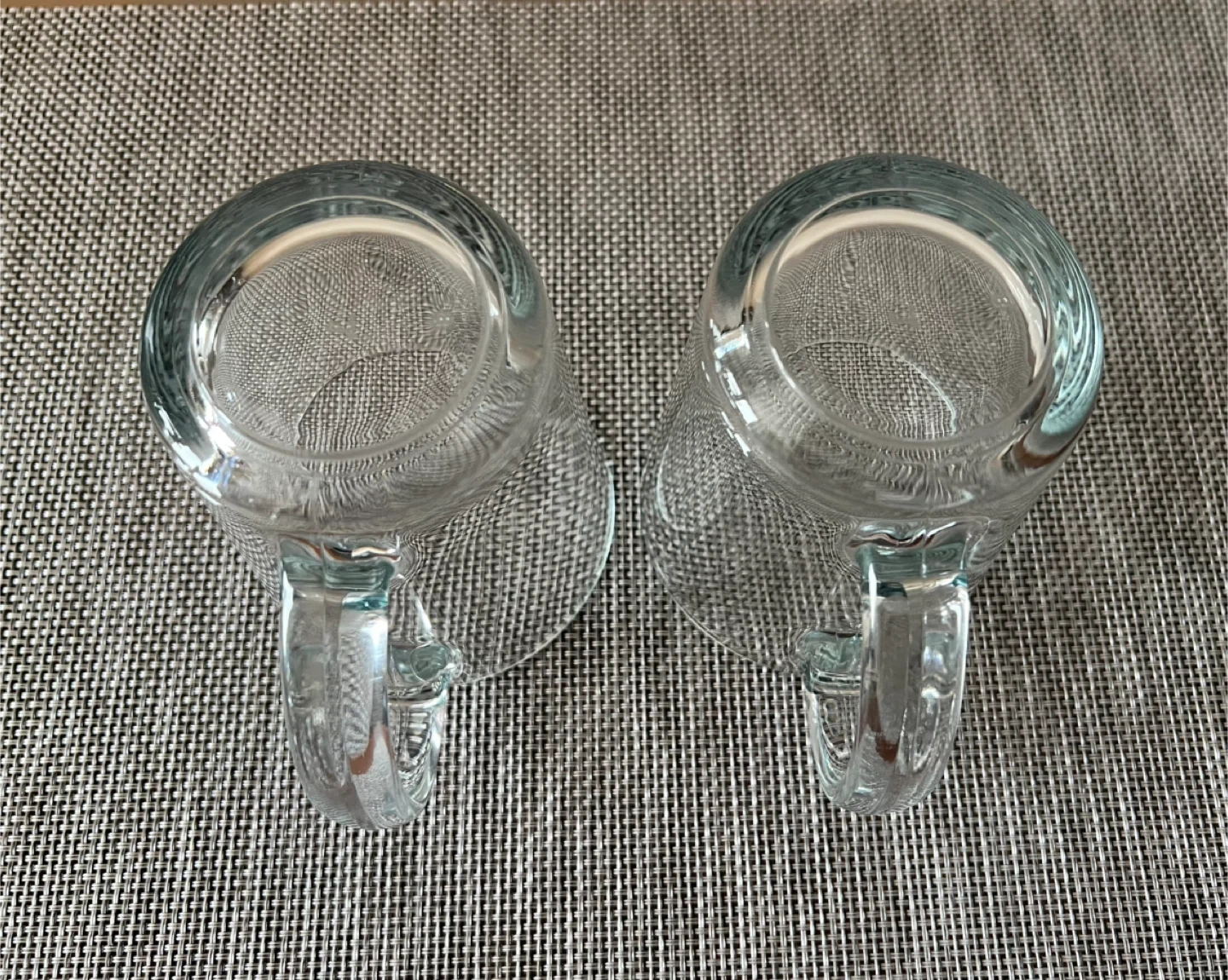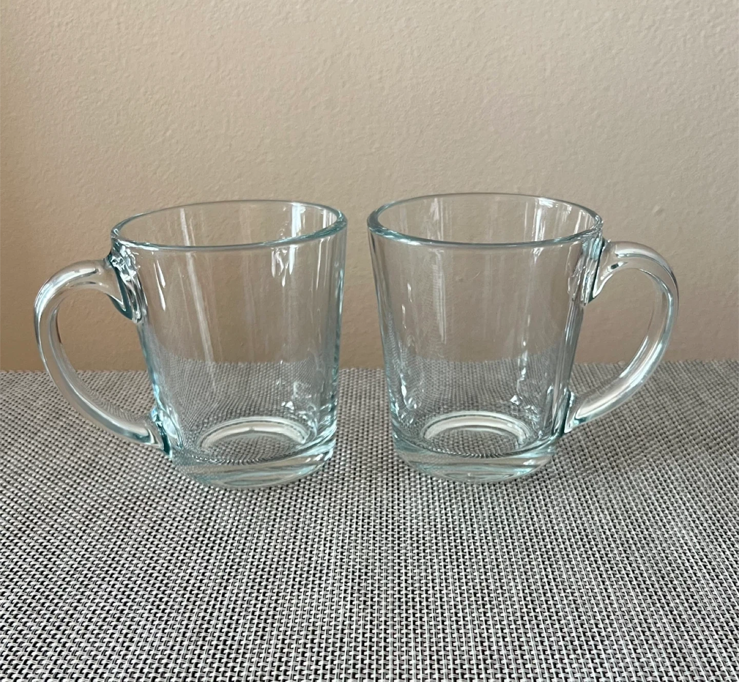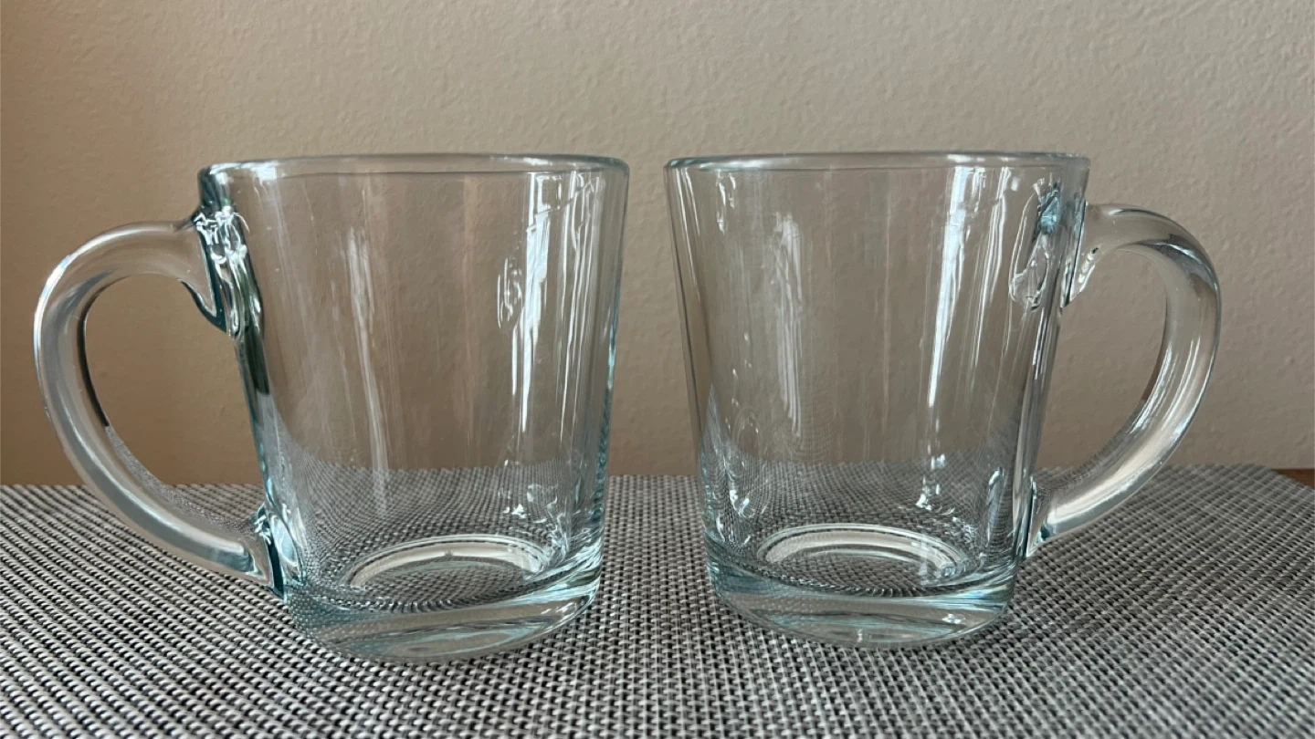 Used - in great condition! Merging 2 apartments and have too much glassware. 2 sturdy clear glass coffee/tea mugs Minor signs of wear from normal use Dimensions: 4” H x 3.5” Diameter Pick up only, near Astoria Park - Queens NYC 11102 Only Cash (preferred) or Venmo for payment Check out my other listings!
