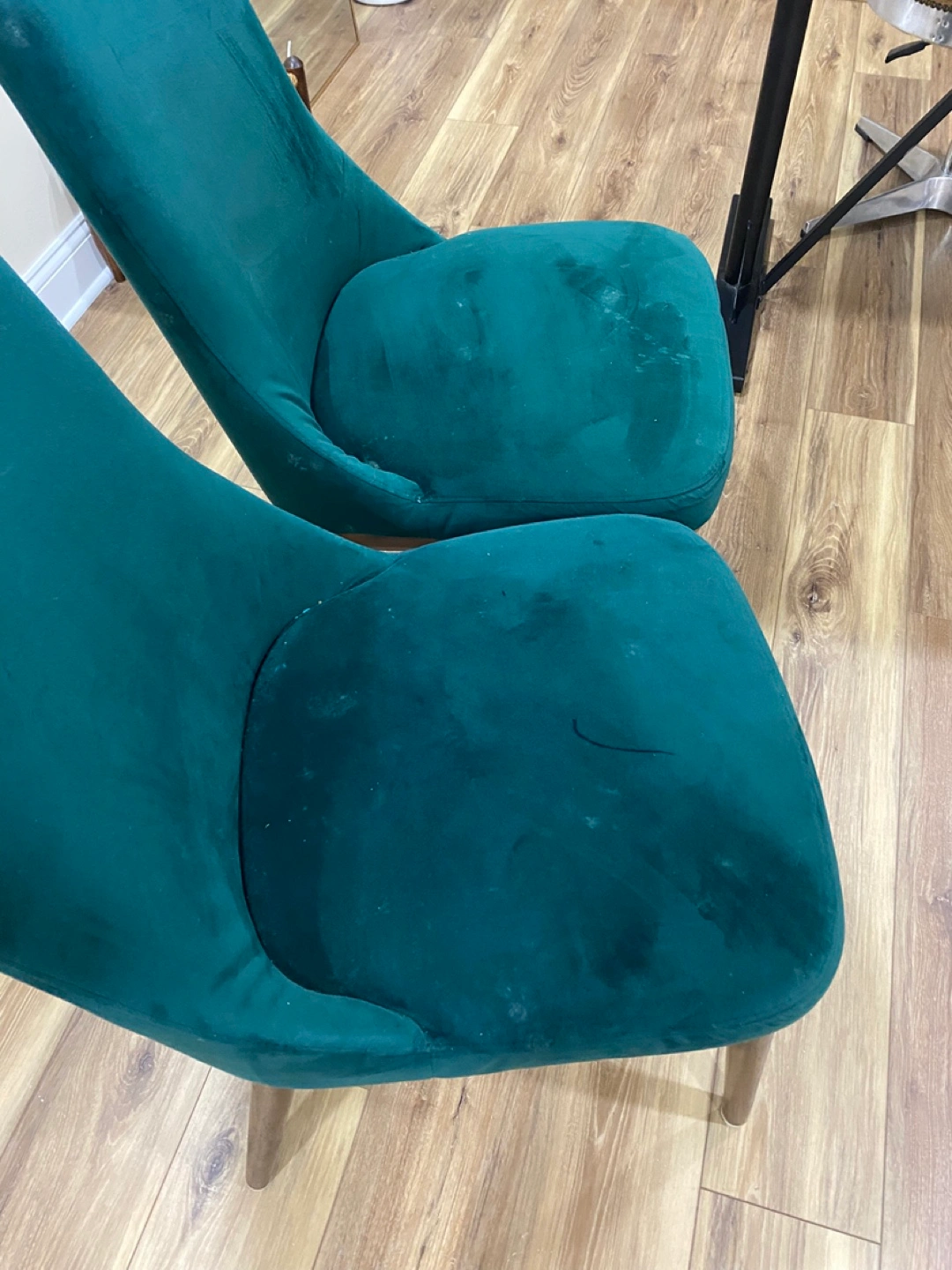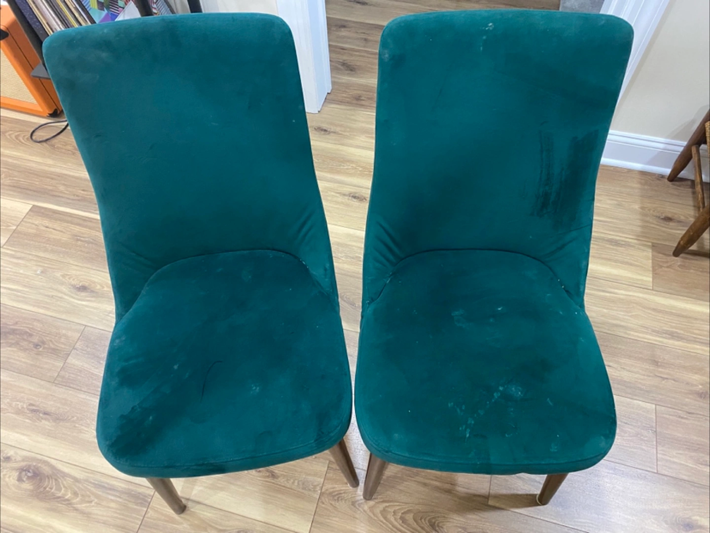 HomeBuy and sellSet of 2 Green Velvet Dining ChairsShannonRhinebeck Village812 reviewsSet of 2 Green Velvet Dining ChairsFurniture · $19Selling a set of two dining chairs. They are a beautiful green velvet color. They have some signs of use.ConditionOkayWhere to meetRhinebeck0 chats·0 favorites·43 viewsGet the Karrot app to chatOther listings by ShannonShow allKenmore Grill$60Rhinebeck VillageSacvon Toaster$5Rhinebeck VillagePortable Air Conditioner$30Rhinebeck VillageGlass Mushroom Table Lamp - pink$9Rhinebeck VillageNinja Air Fryer$25Rhinebeck VillageGold and White Bath Mat$3Rhinebeck VillagePopular on KarrotShow allWood Dining Table (70x39x30)FreeArlingtonDisplay Cabinet with Glass Shelves$135HOPEWELLIKEA OMAR Shelving Unit w/ Clothes Rail$50New HamburgHardwood Canopy Bed (queen)$500PoughkeepsieMattress$202PoughkeepsieIKEA LAGKAPTEN / TILLSLAG Desk$50New Hamburg