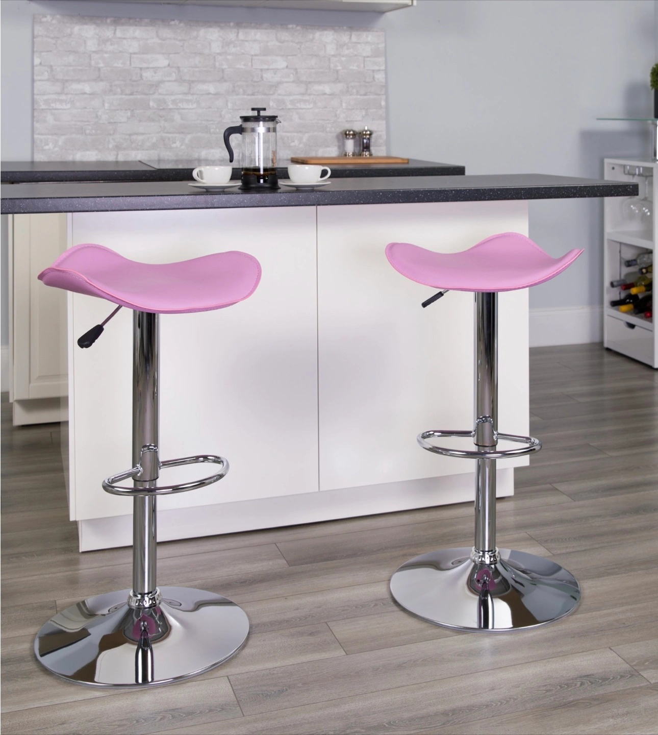 Set of 2 Pink Adjustable Height Bar Stools