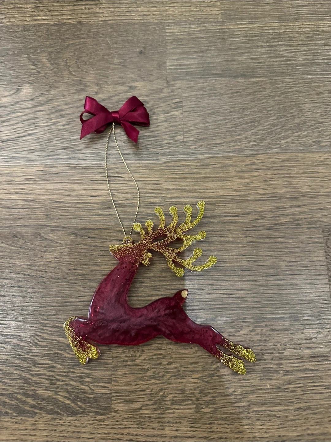Handmade Xmas Epoxy Resin Reindeer Ornaments – Set of 5