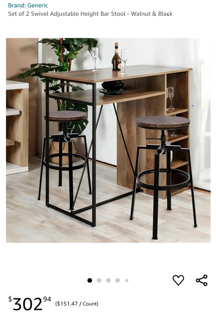 ❤️ Set of 2 Swivel Adjustable Bar Stools - Stackable!
