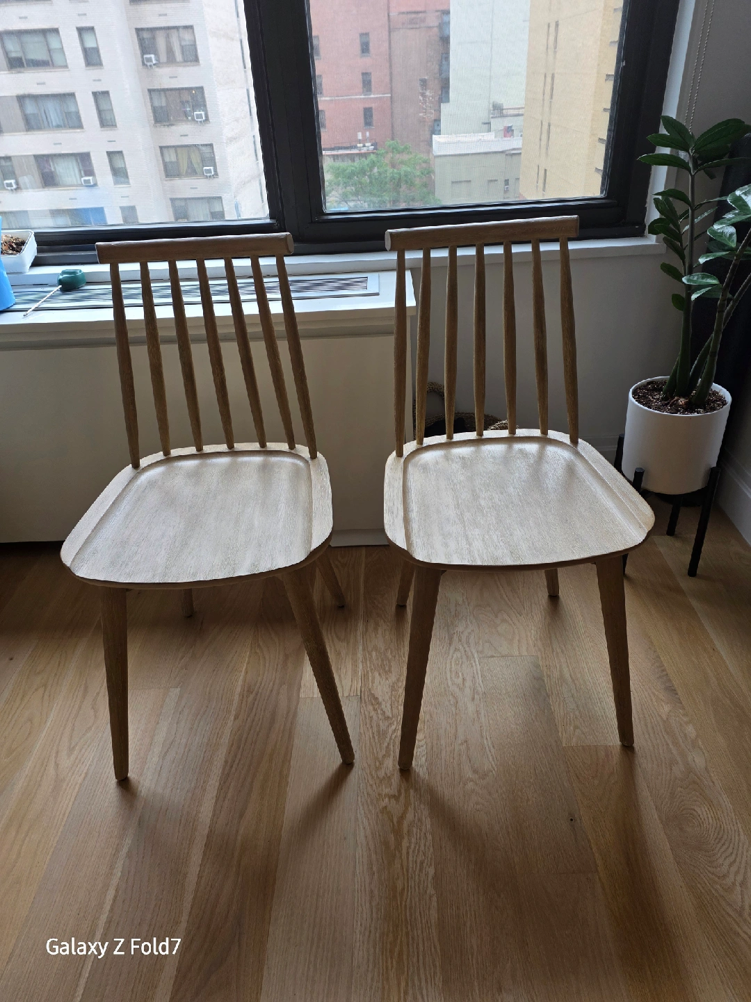 Selling a set of two West Elm windsor chairs. brand new...assembled but doesn't match w interior. The light wood tone is super versatile and complements many styles Retail price is $150/chair https://www.westelm.com/products/windsor-dining-chair-h5047/