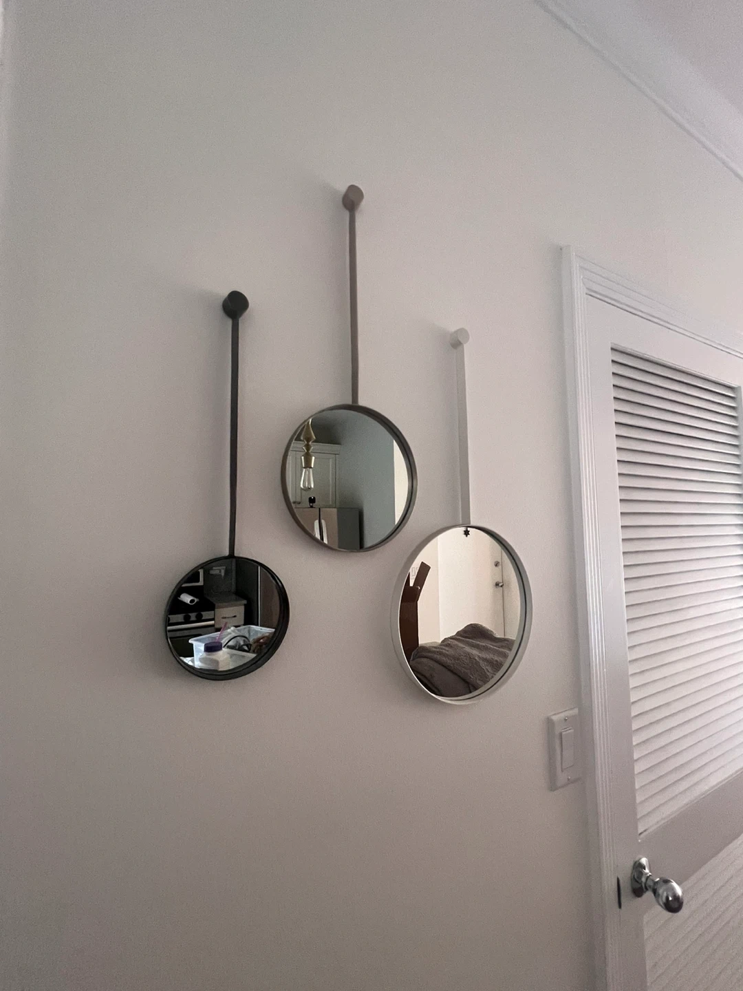 Selling a set of three round hanging mirrors. They come in black, gray, and white. Perfect for adding a touch of modern style to any room