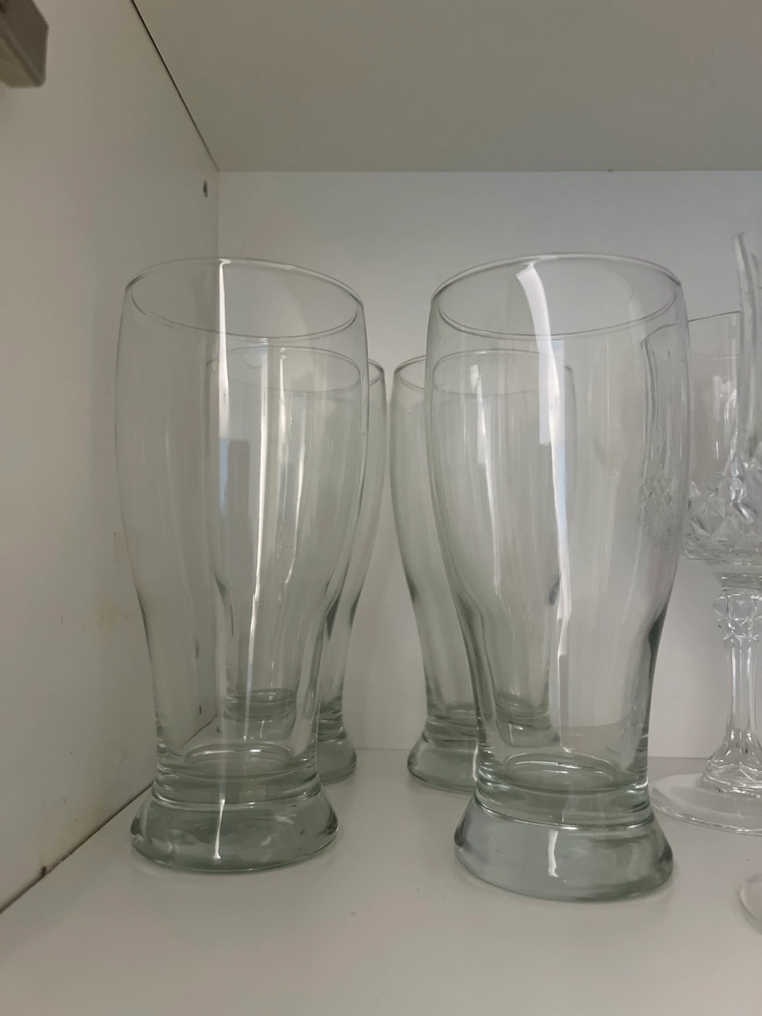 60Four stemmed beer glasses. Clear glass. Great for parties or everyday use.