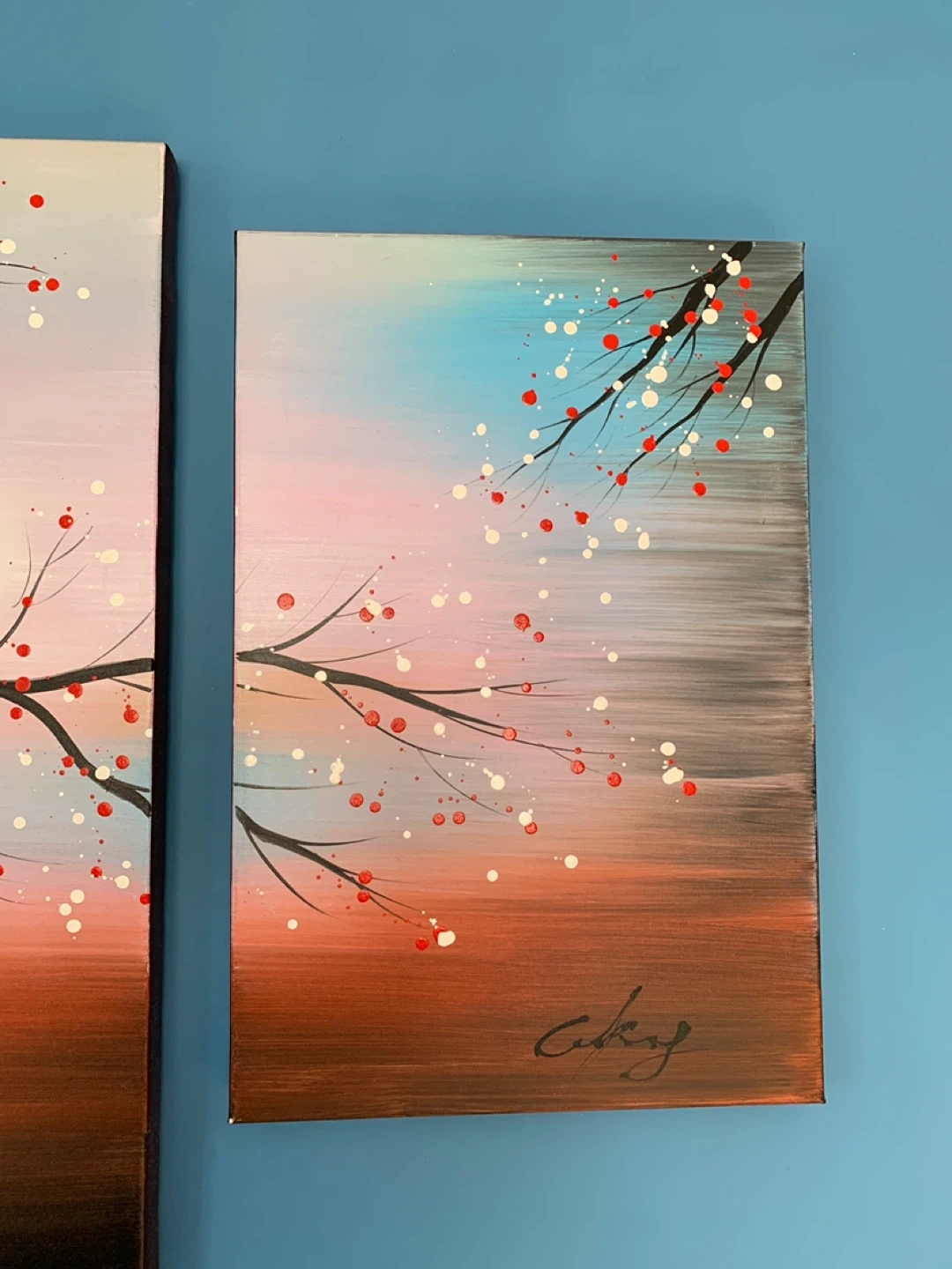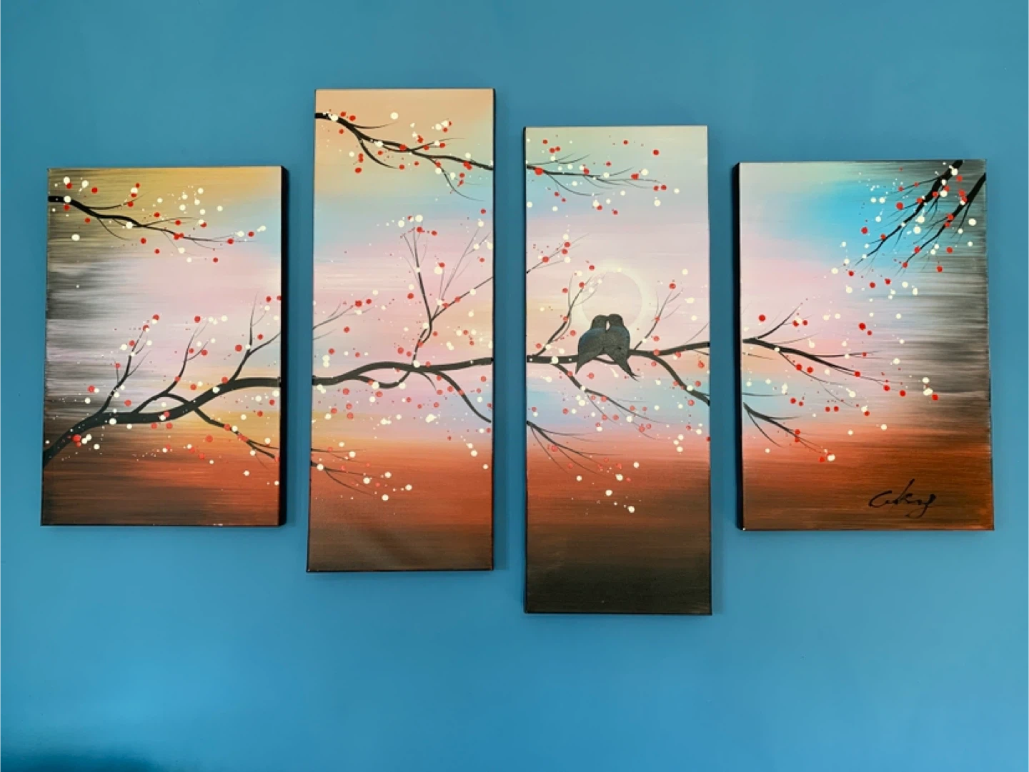 10Selling a set of 4 canvas paintings featuring a beautiful floral design. They would look great in any room!