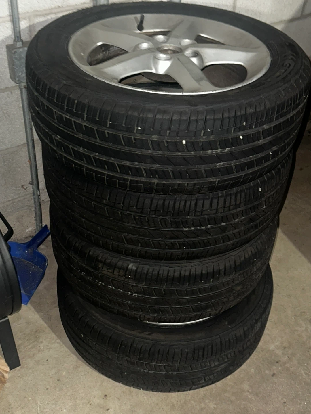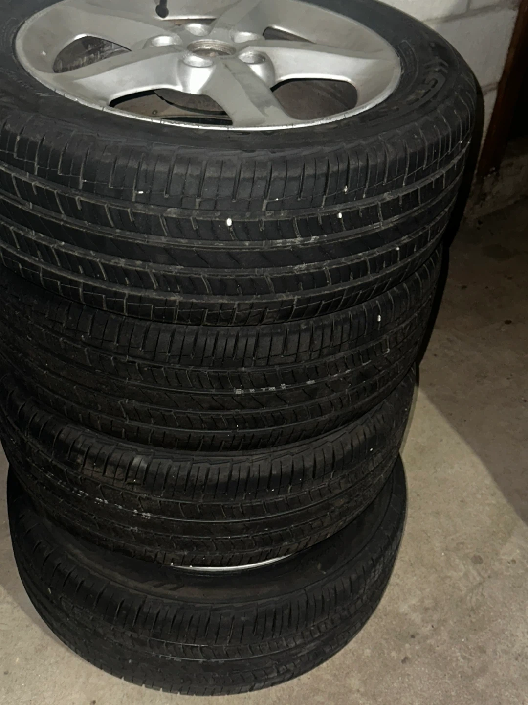 Selling a set of four used tires. wear but not even 100 miles on them got a new car and didn’t need them.