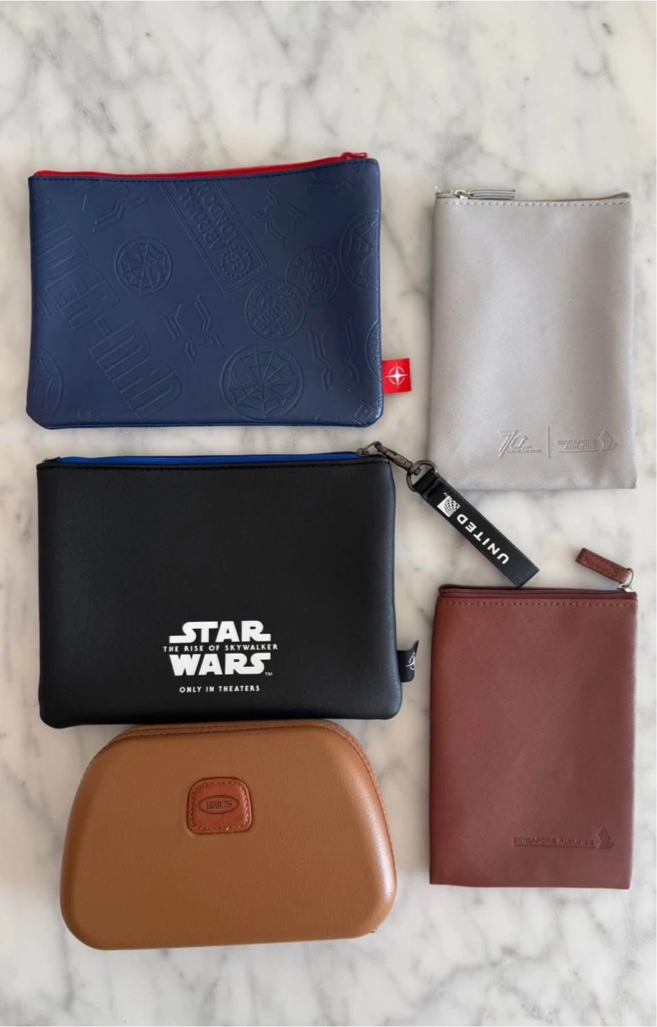 Selling a collection of travel pouches from various brands and themes! You'll find a Star Wars: The Rise of Skywalker pouch, a Brics pouch, a United pouch, a Singapore Airlines pouch, and a Spider-Man pouch. Perfect for organizing your essentials on the go Gently used in good condition.