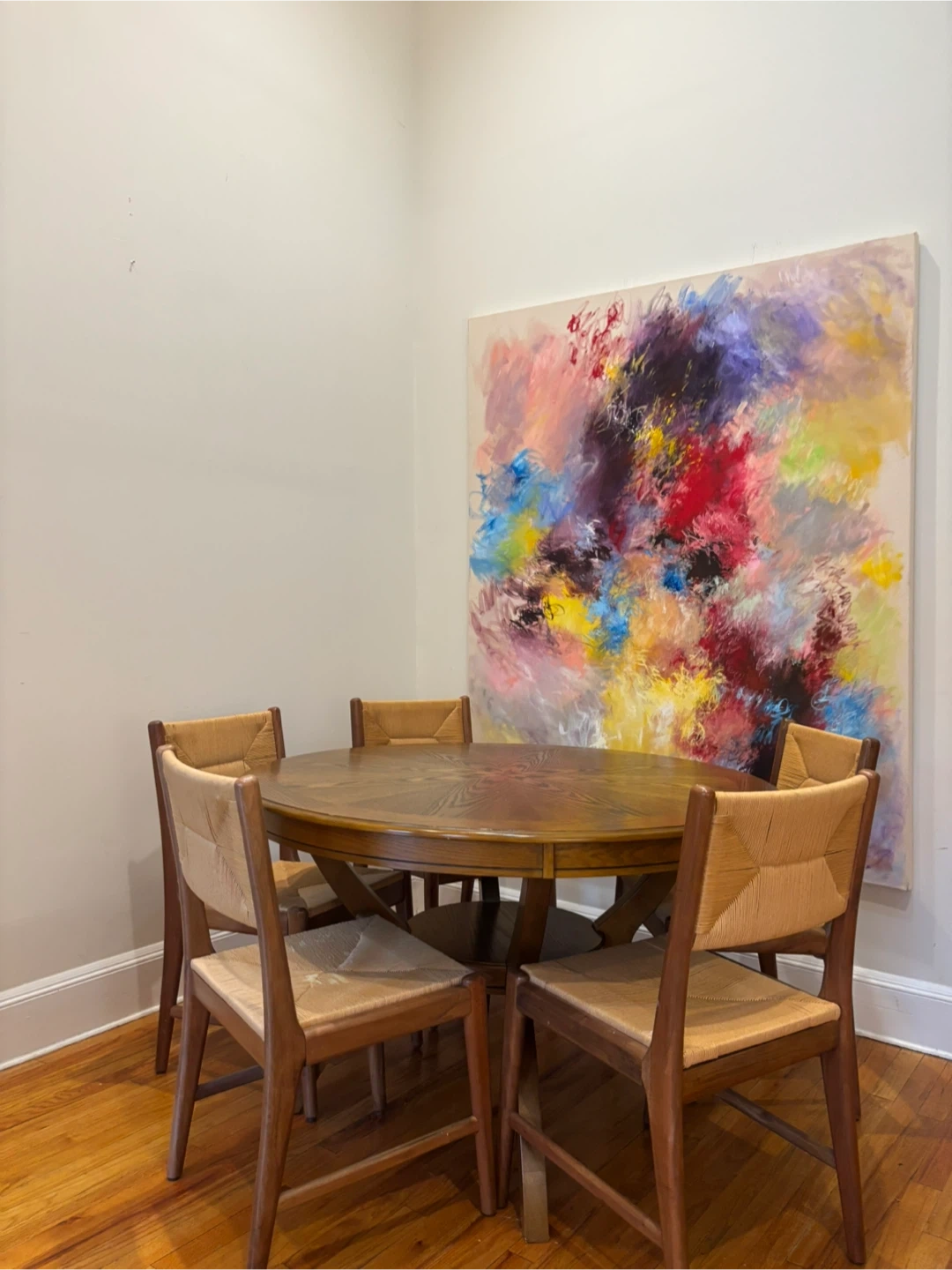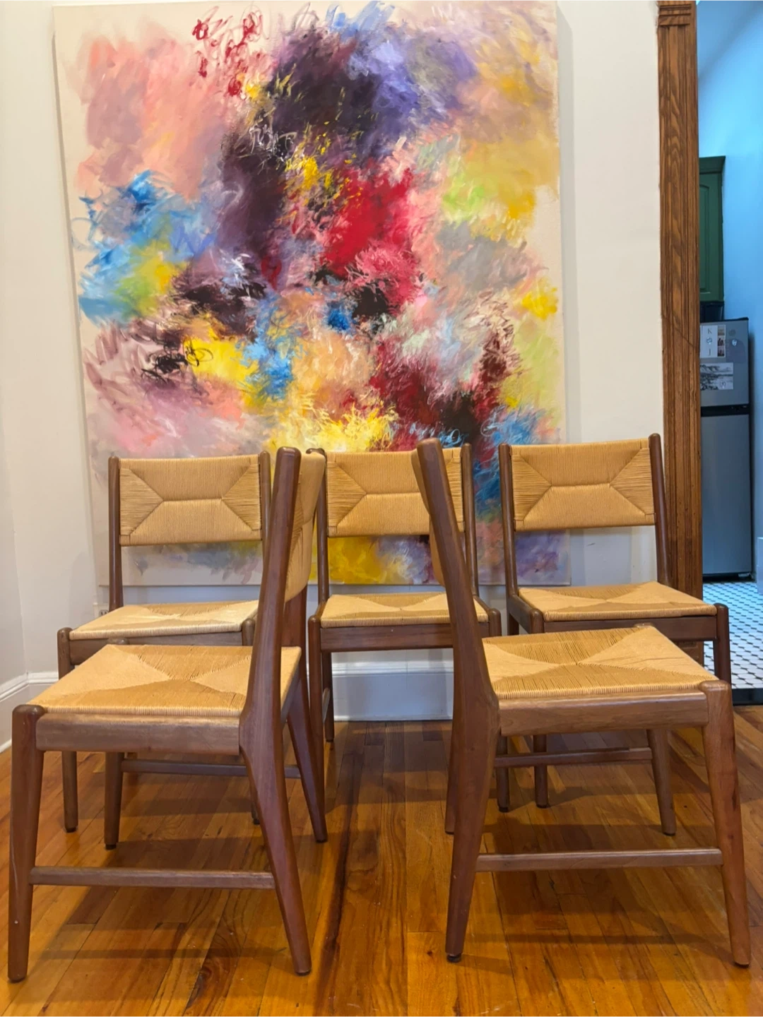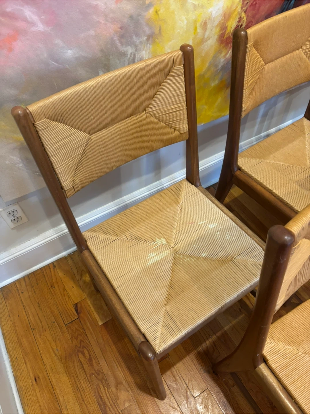 Set of 5 Wooden Dining Chairs and TABLEwith Woven Seats