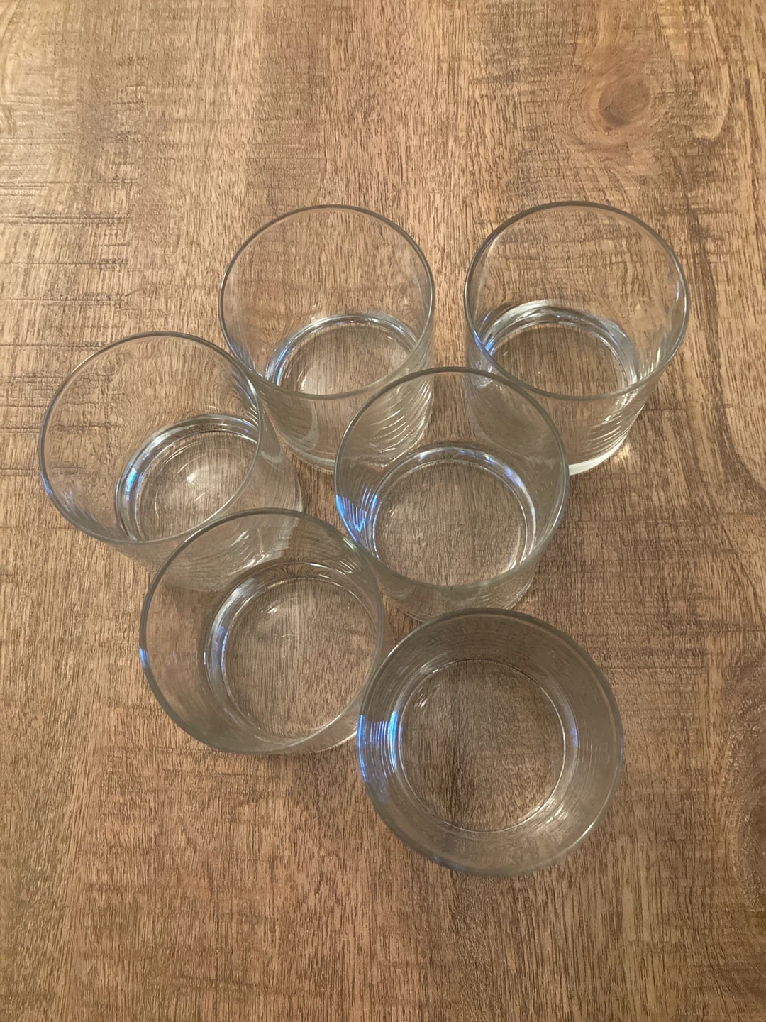 Selling a set of six clear drinking glasses. They are in great condition and ready for a new home! They are approximately 3.5 inches tall. Please let me know if you have any questions or would like to make an offer. I have so much home decor that needs to go by 10/20. I’m open to offers!