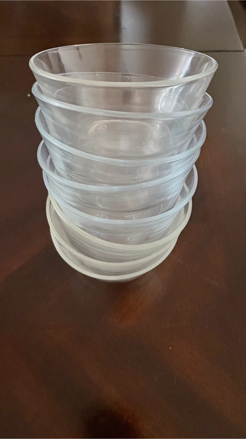 36Donating a set of six clear glass bowls with any purchase. They're in great condition and perfect for serving snacks or desserts