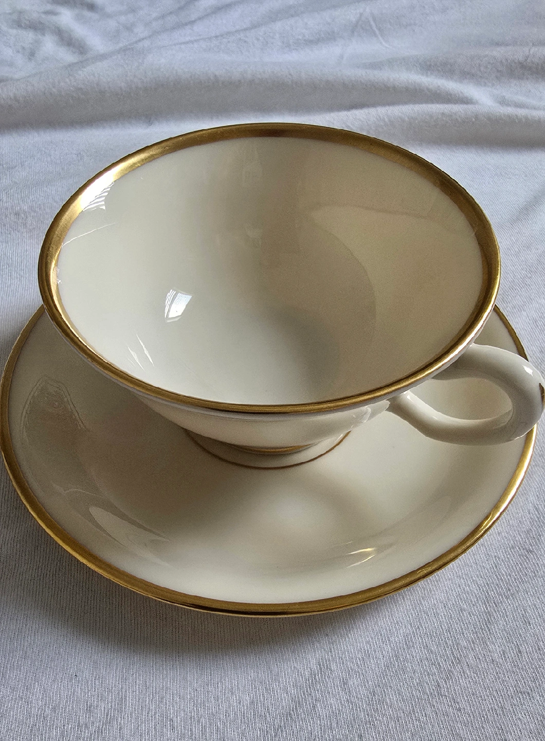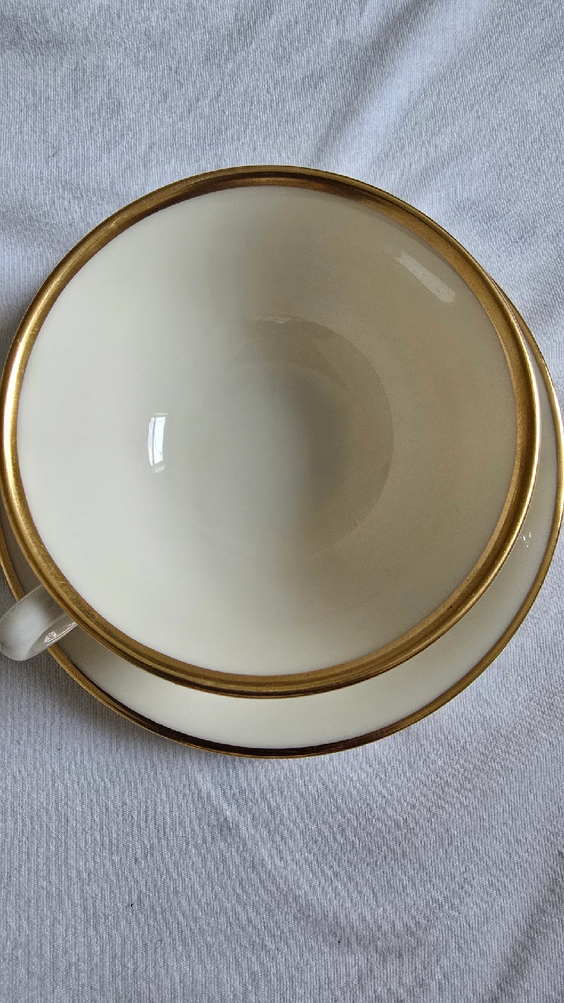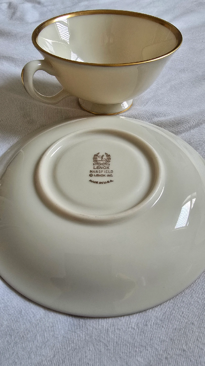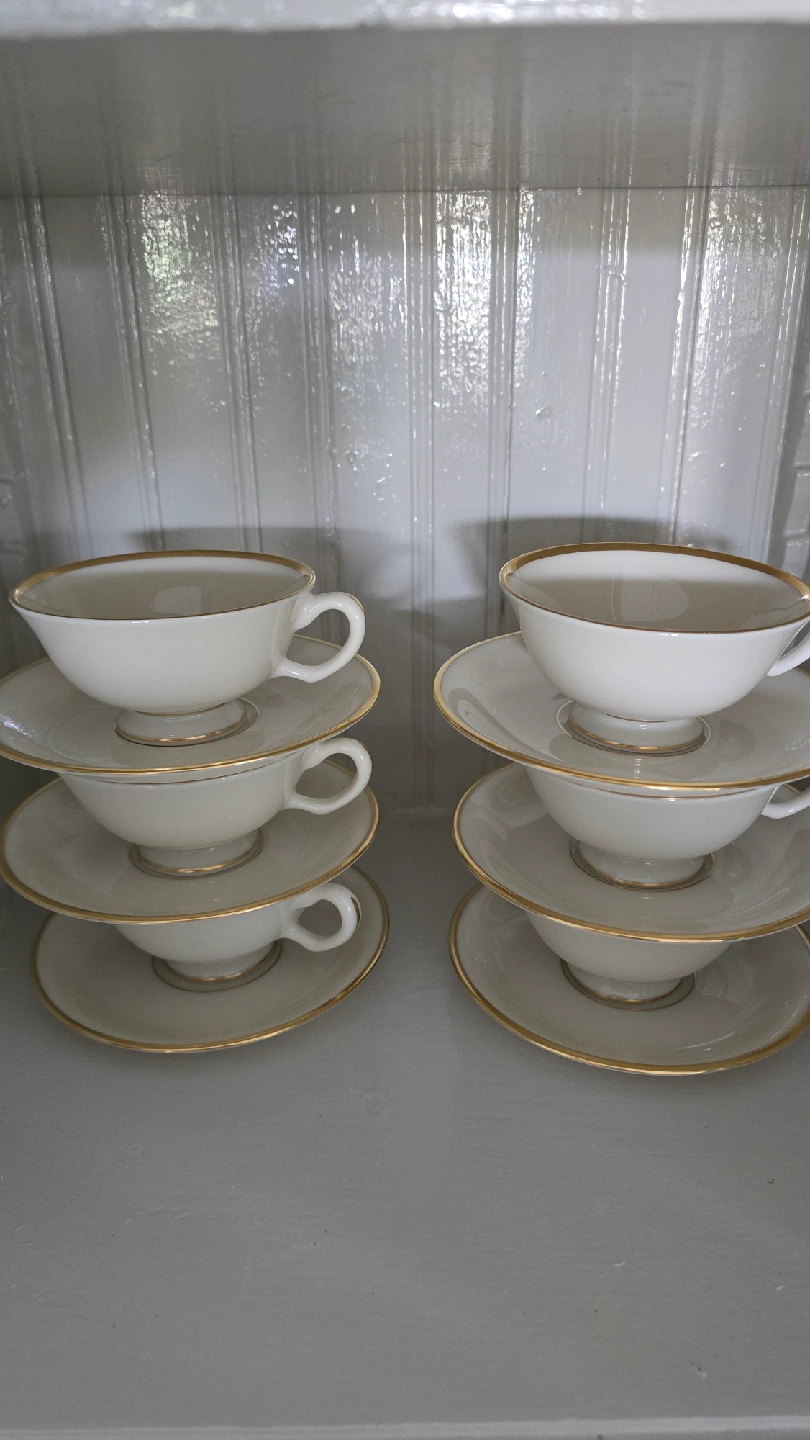 106 complete footed cup & saucer sets, pattern Lenox Mansfield, ivory with gold rim, made in USA, unused/mint condition, no chips or rim wear CASH ONLY PICK UP IN ANDERSONVILLE near Clark and Foster