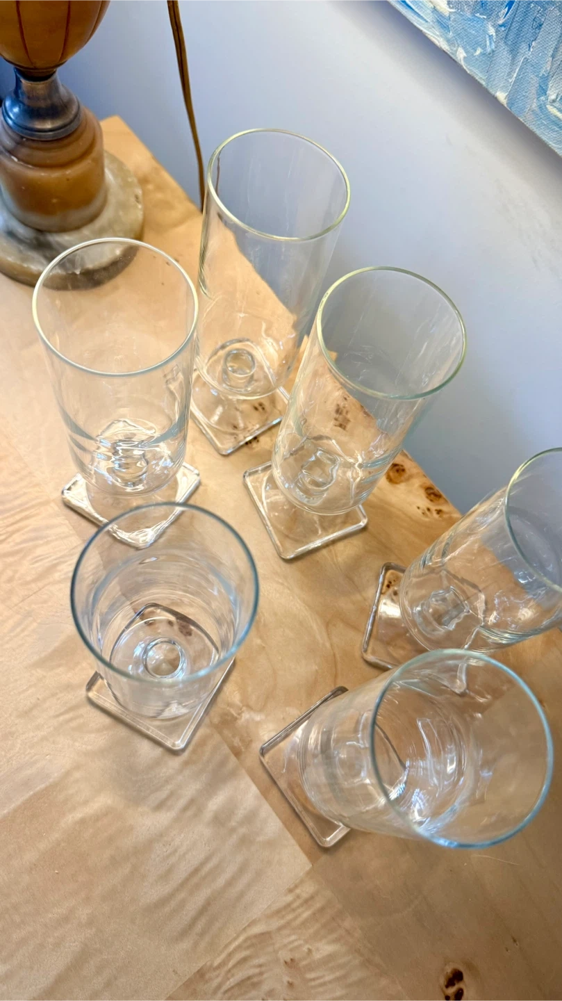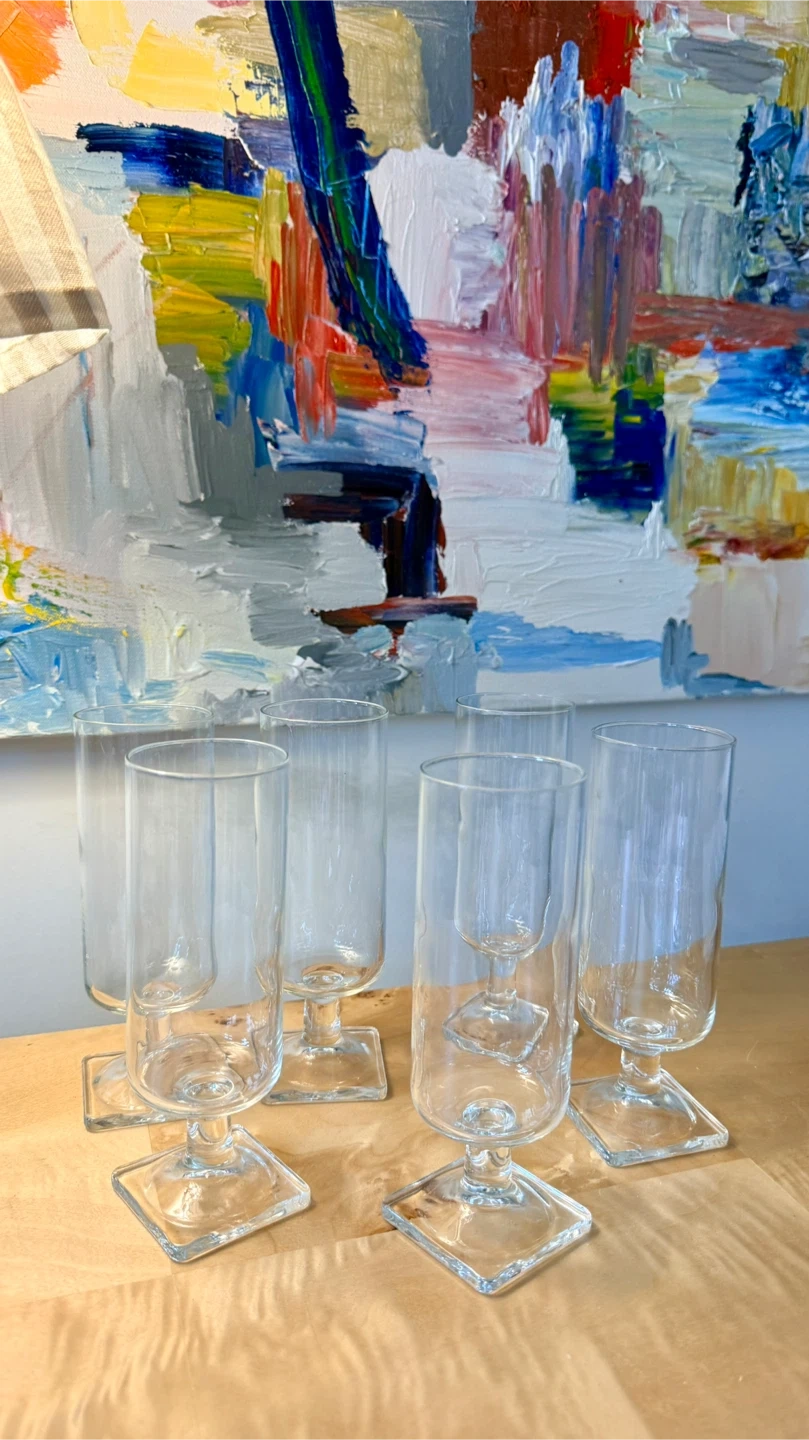 Set of 6 Vintage Clear Stemmed Drinking Glasses