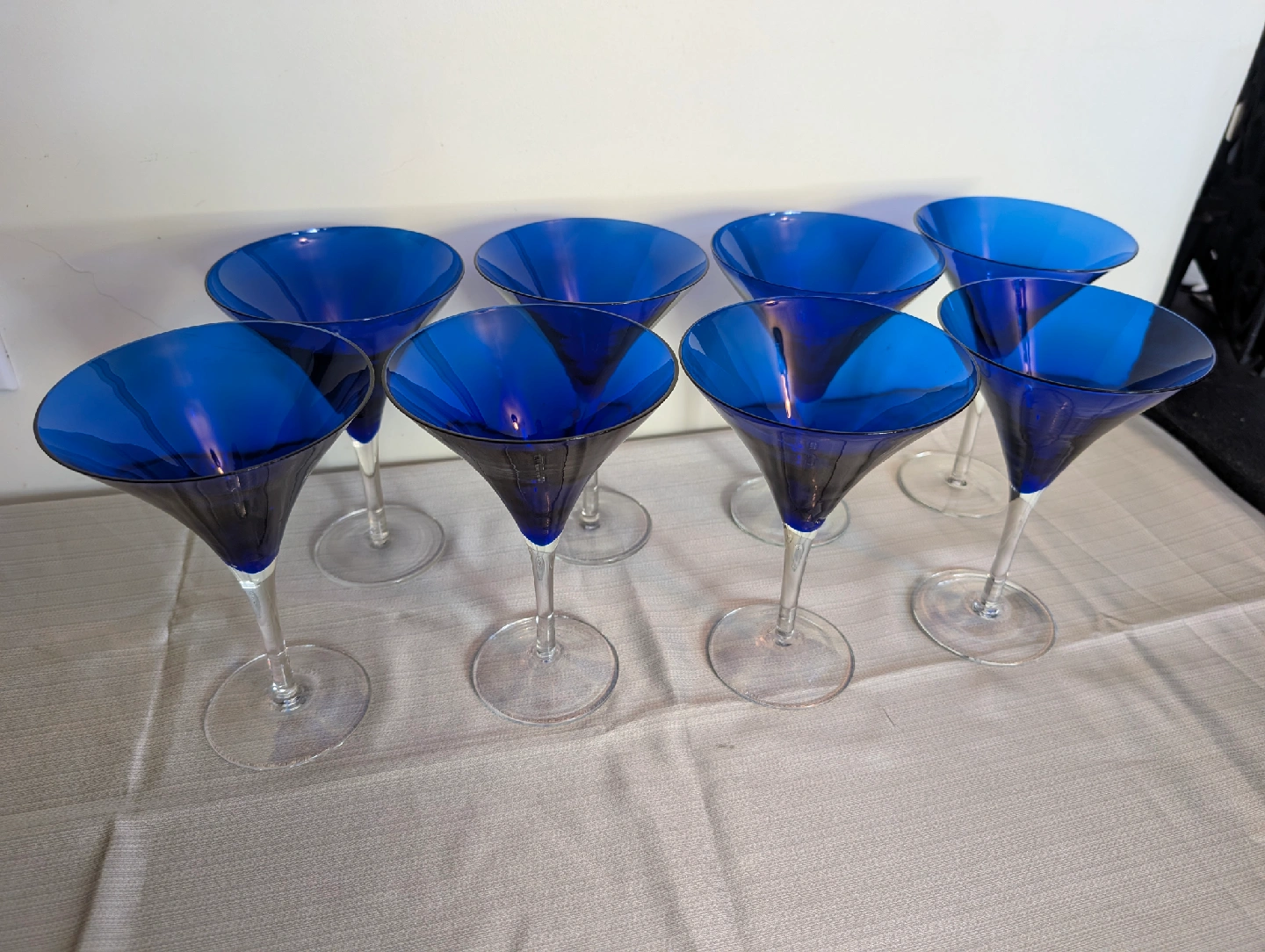 I have a set of eight cobalt blue martini glasses for sale! They are in great condition and would be perfect for entertaining or adding a pop of color to your barware collection