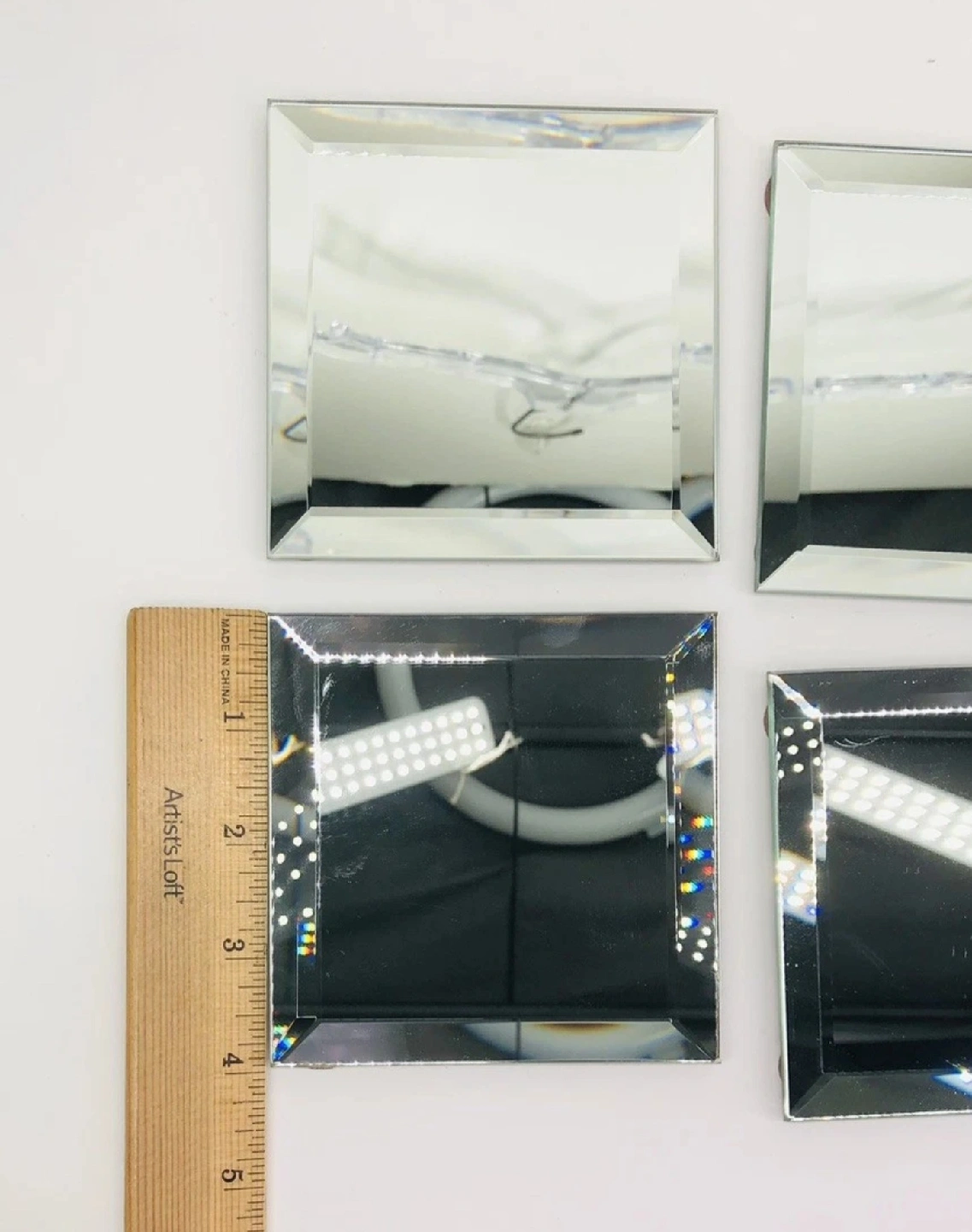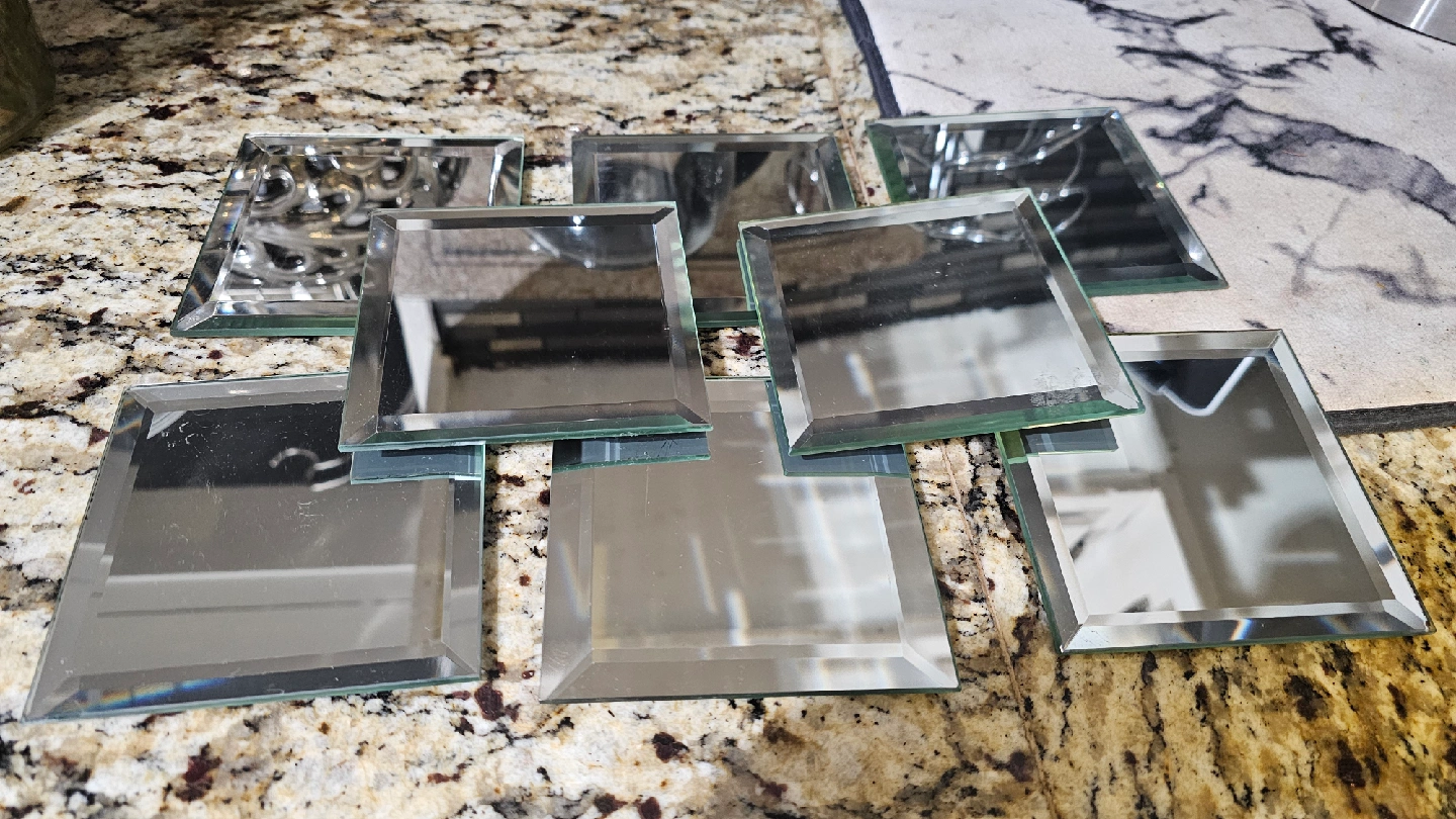 set of 8 Beveled Mirror Glass 4" Square Coasters Vintage barware. $20