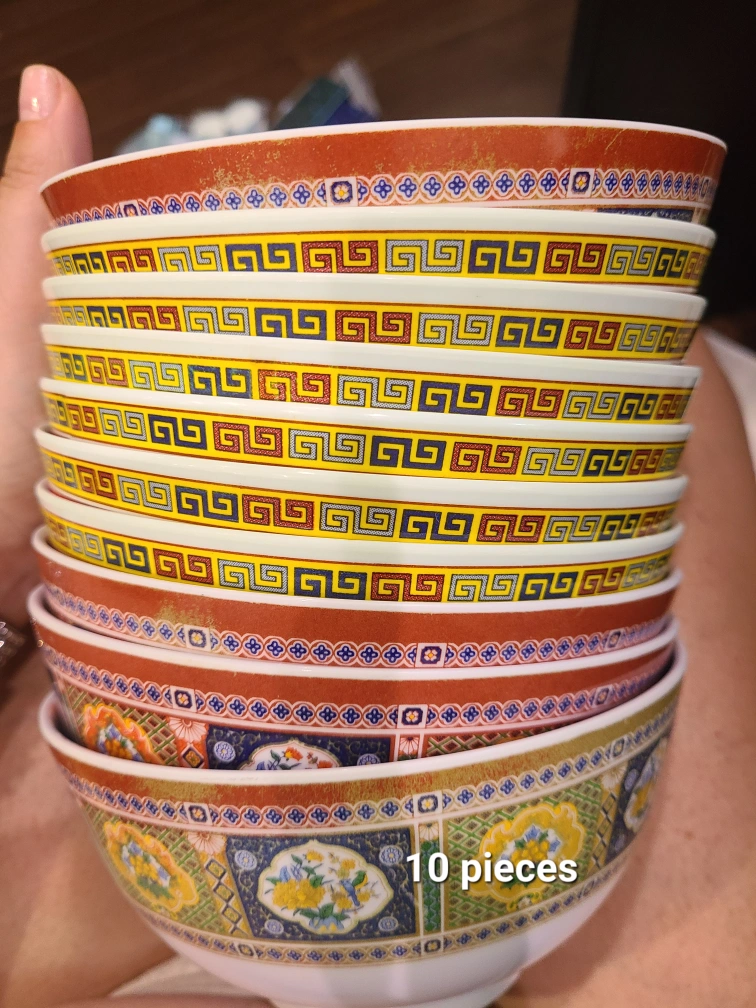 49Selling a set of plates with a unique Asian-inspired design! They have a red and white pattern with floral accents and traditional symbols. Perfect for adding a touch of culture to your dining experience.