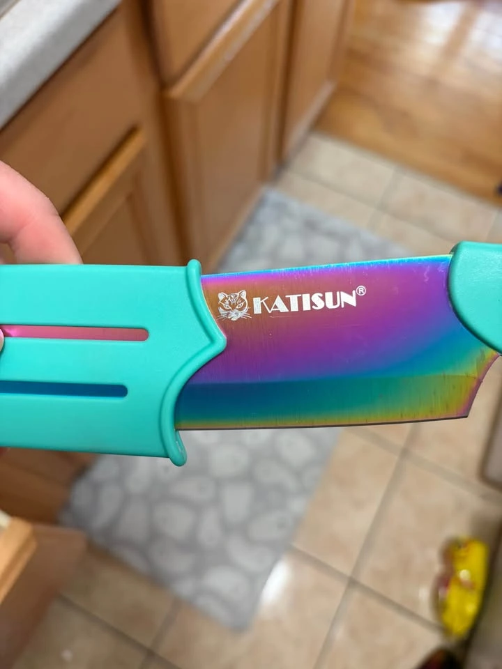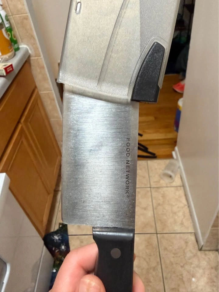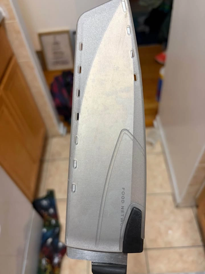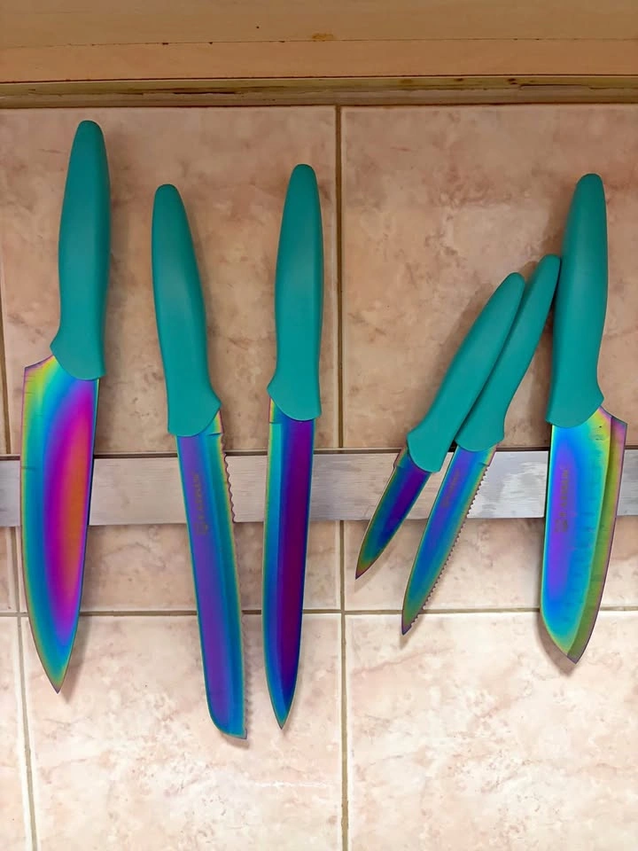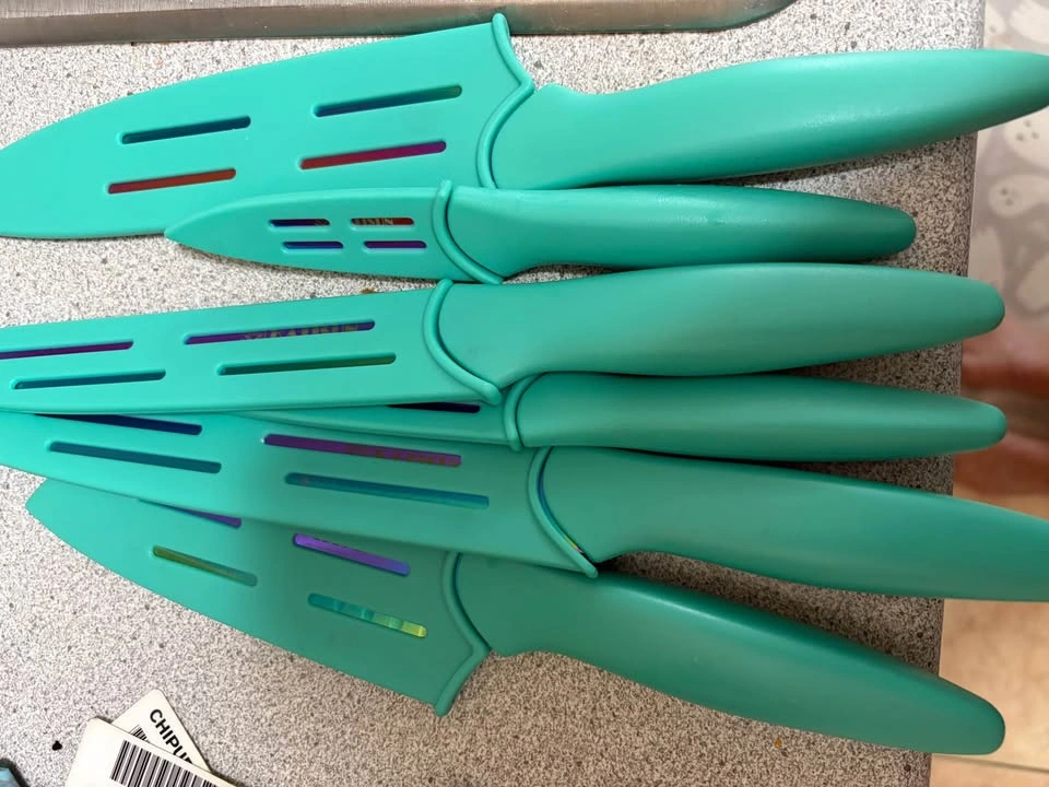 10These knives have been hanging over my stove and I think only one has been used. Excellent shape still has all covers. Extra chef knife from the food network.