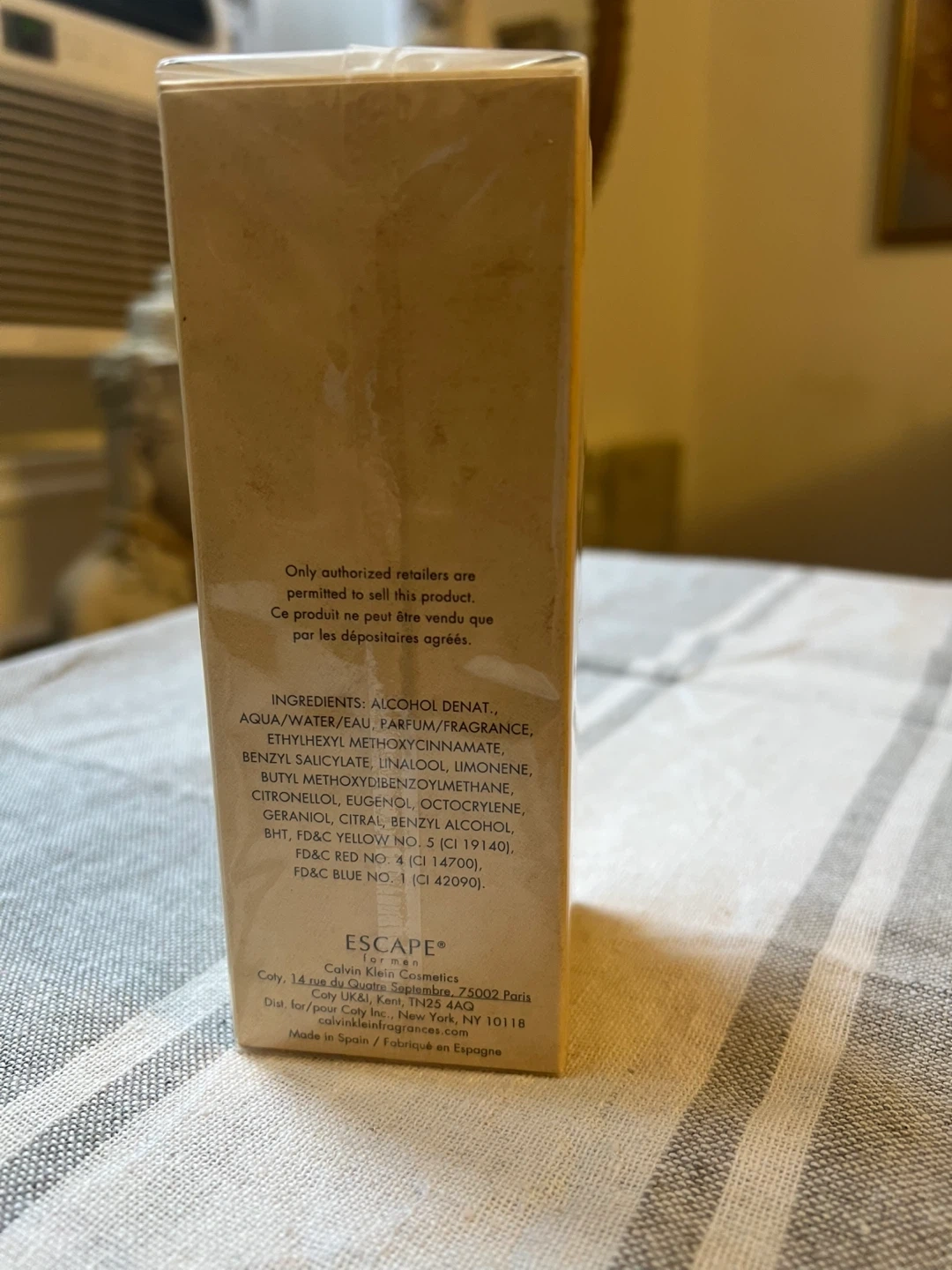 $50 each Selling two fragrances: Jaguar Classic Black Eau de Toilette Vaporisateur Natural Spray (100 ml, 3.4 fl.oz, 80% vol) and Calvin Klein Escape for Men Eau de Toilette Spray Vaporisateur (3.3 FL OZ, 100 ml e).