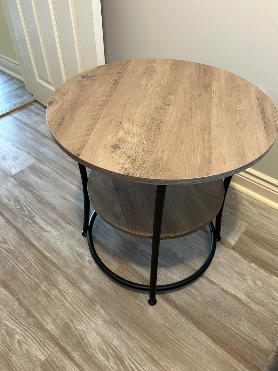 2 Tier round nightstand or end table with steel frame. Perfect for small places . Great for living room or bedroom. (55cmDx55cmWx55cmH) Excellent Condition