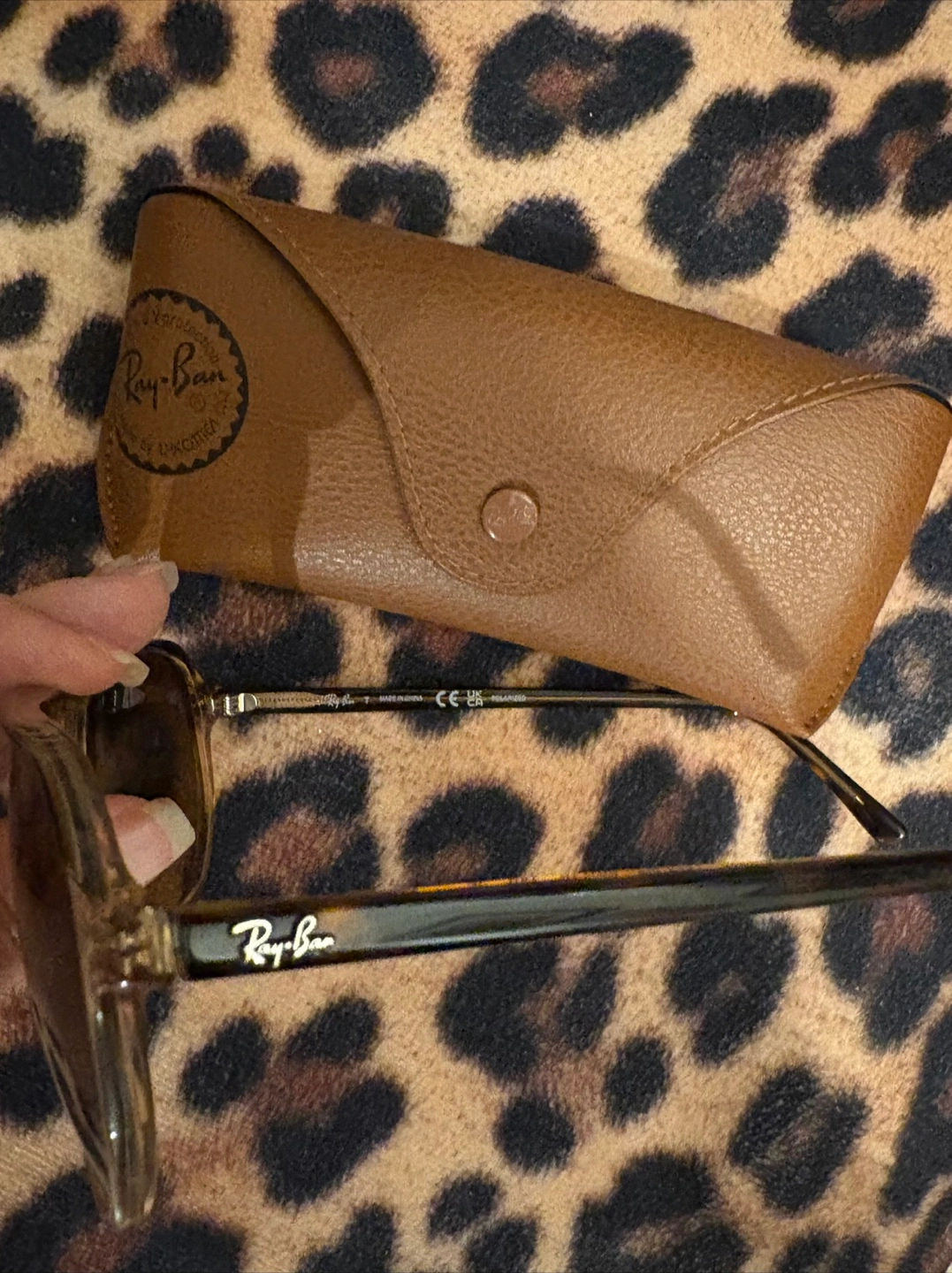 Gender neutral Ray Ban Aviator Sunglasses with a brown leather case