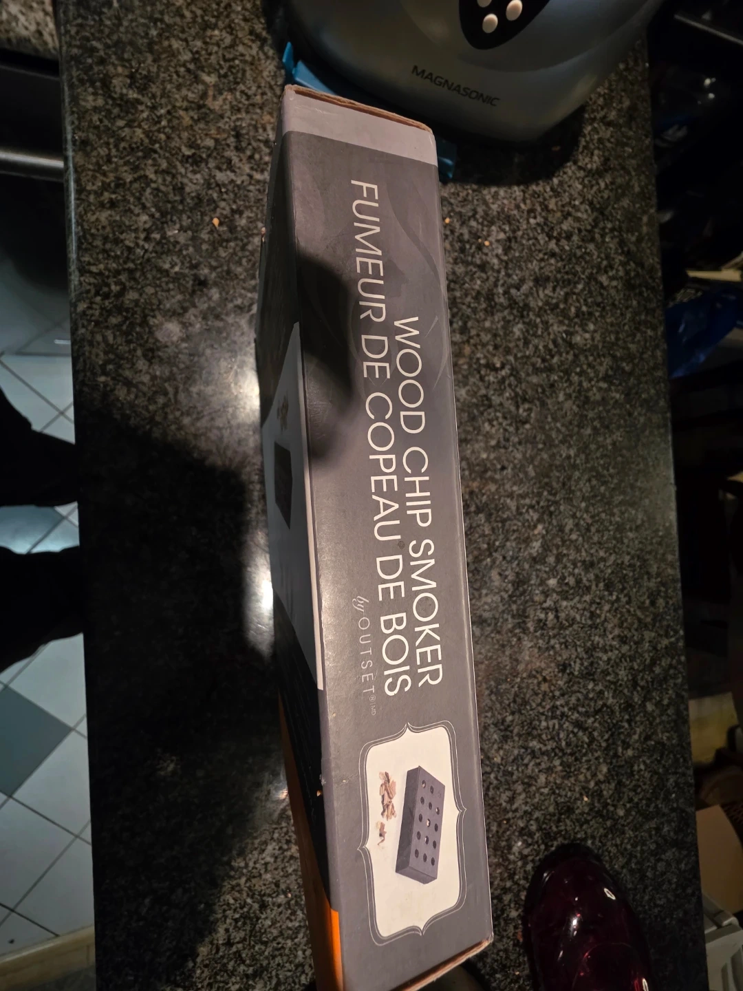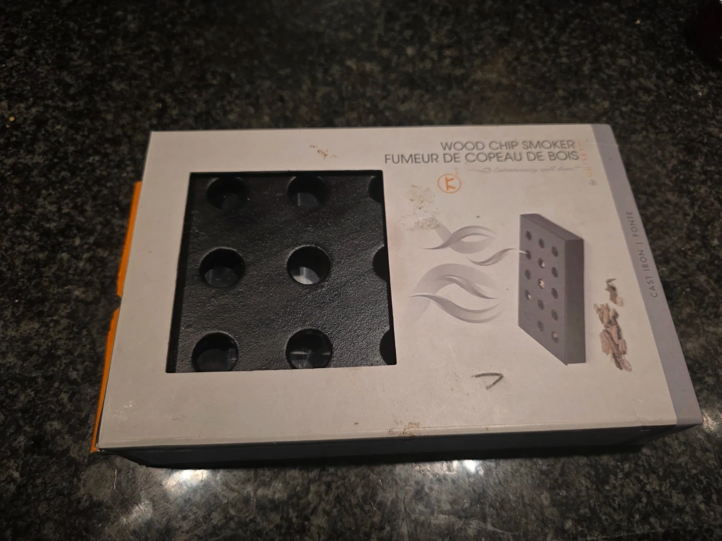 This Outset wood chip smoker box is for use with charcoal or gas grills. It allows for flavour-enhancing wood chip smoking. It's made of cast iron.