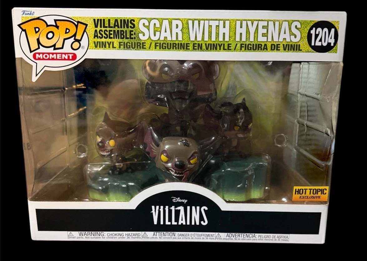 This is a Funko Pop! Moment vinyl figure featuring Scar with Hyenas. It's a Hot Topic exclusive. Collectible figure from Disney Villains line.