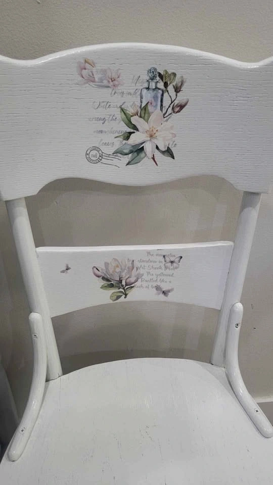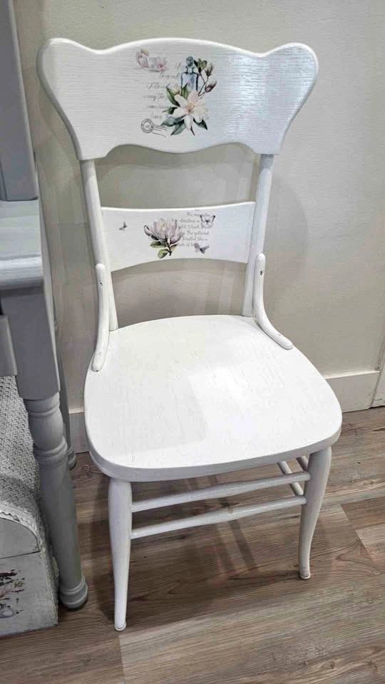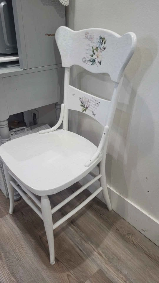 10Hermosa shabby chic silla antigua (1) de madera retocada a mano. Estable y firme. $28 pickup in Alsip. Let me know if you're interested!