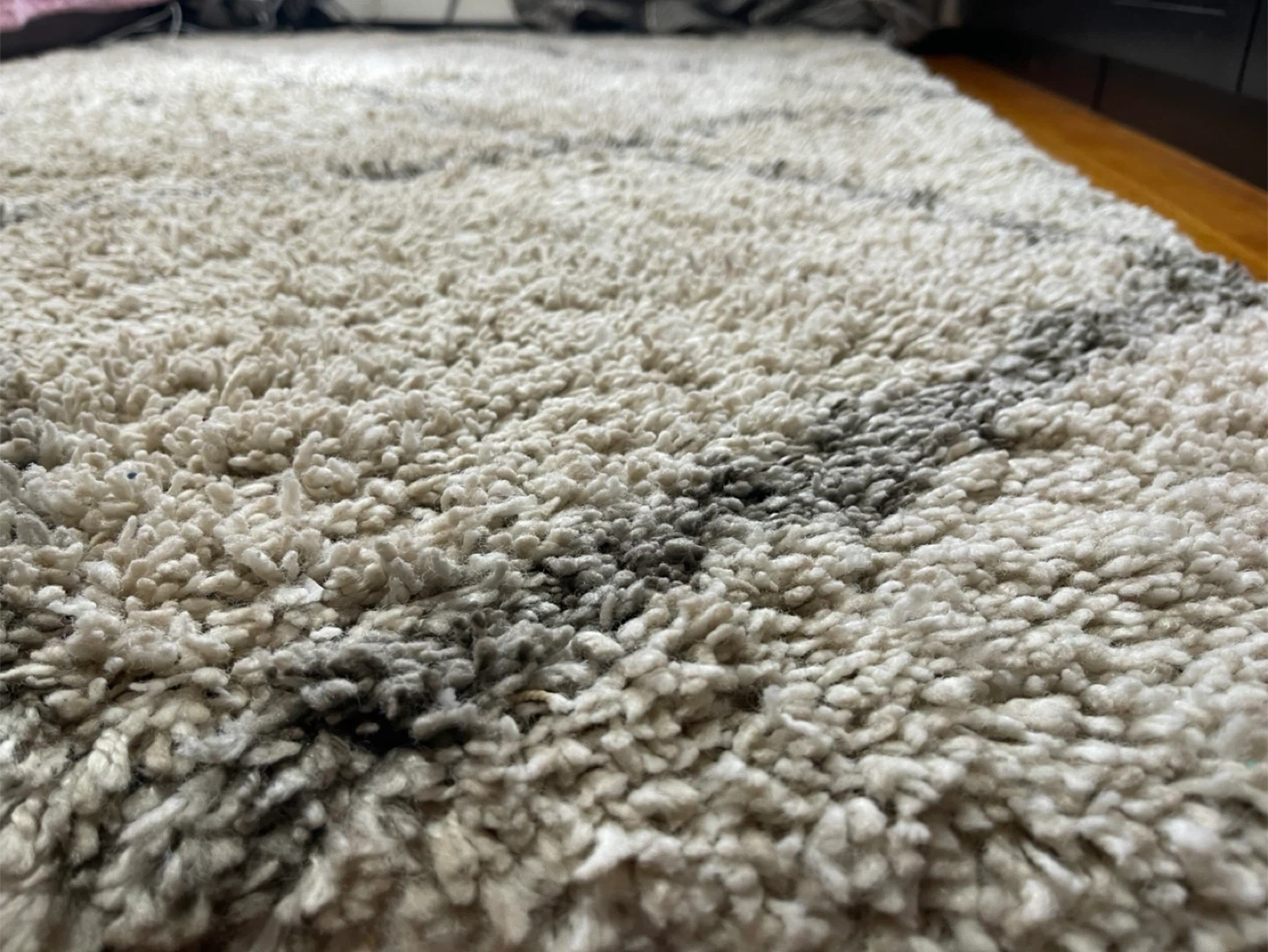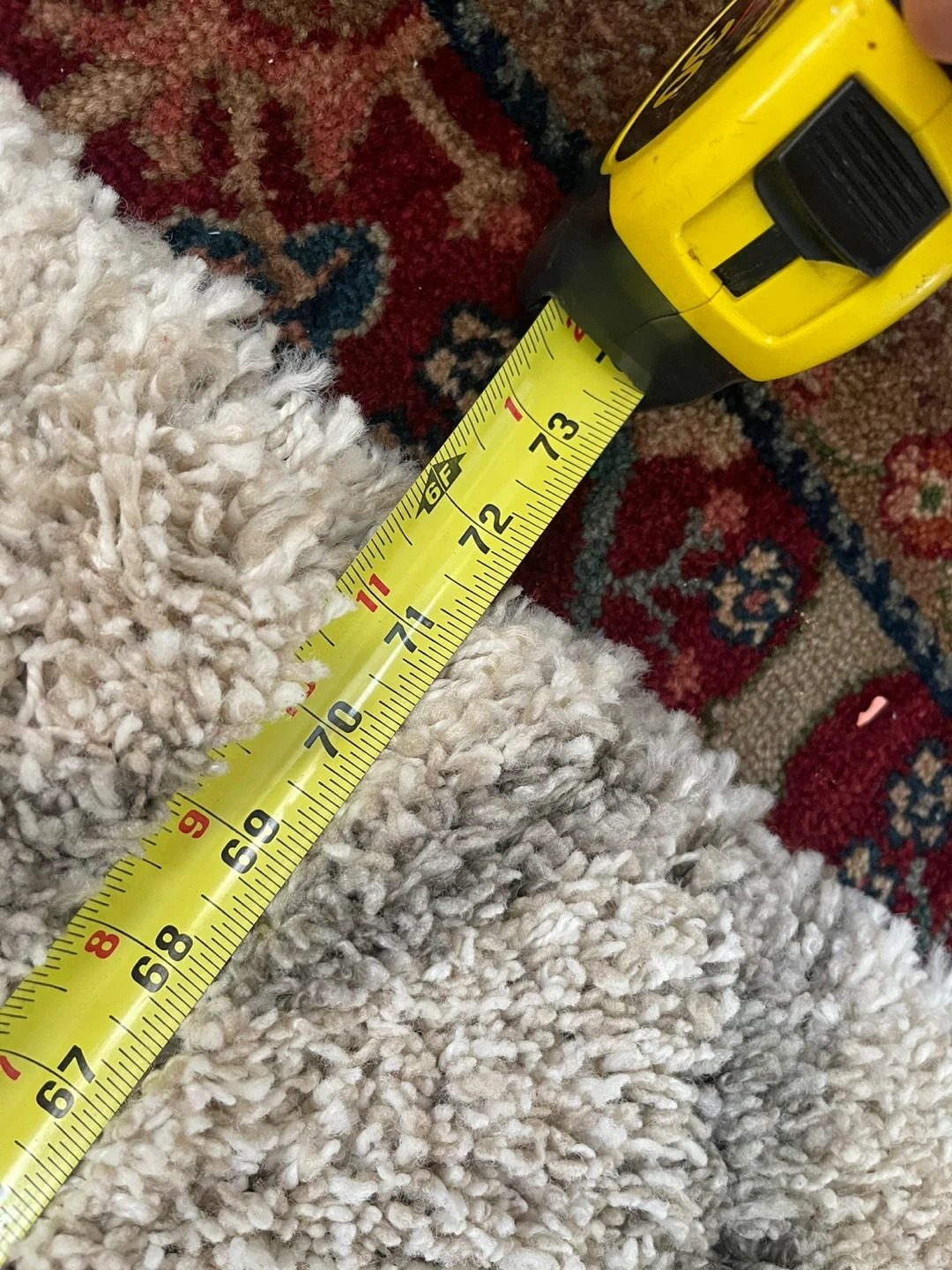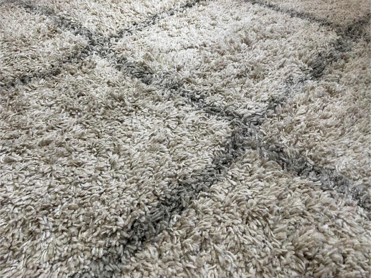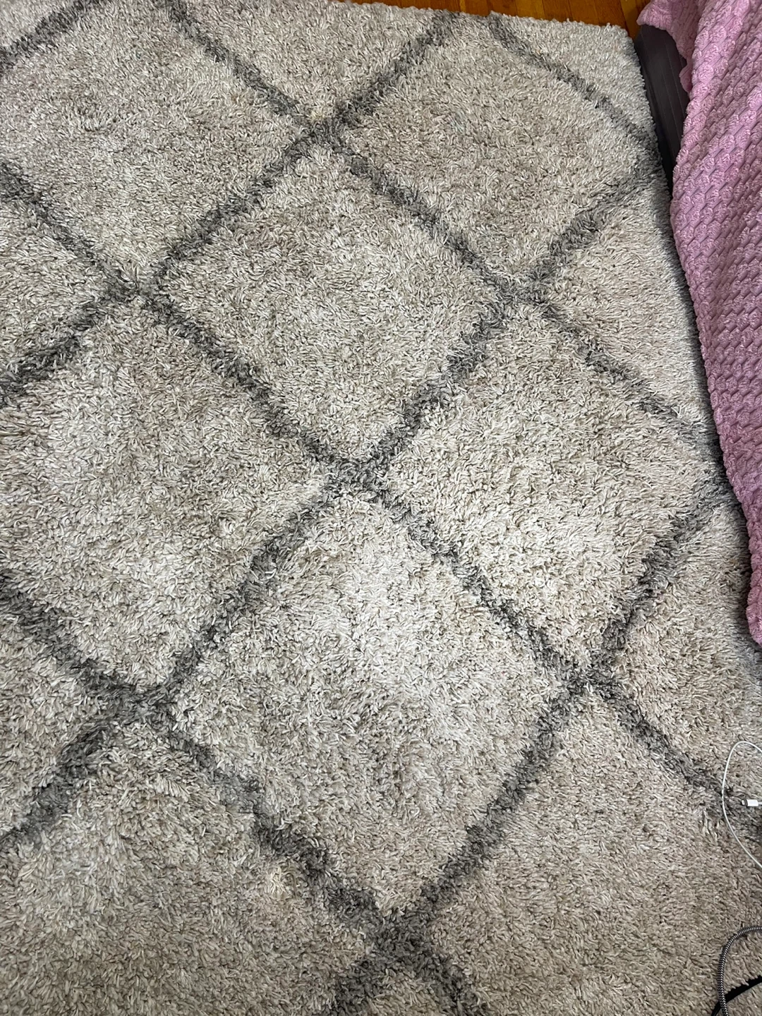 Selling a shaggy area rug with a cool diamond pattern! It's in good condition and would look great in any room. The rug measures approximately 6 feet by 7 feet.