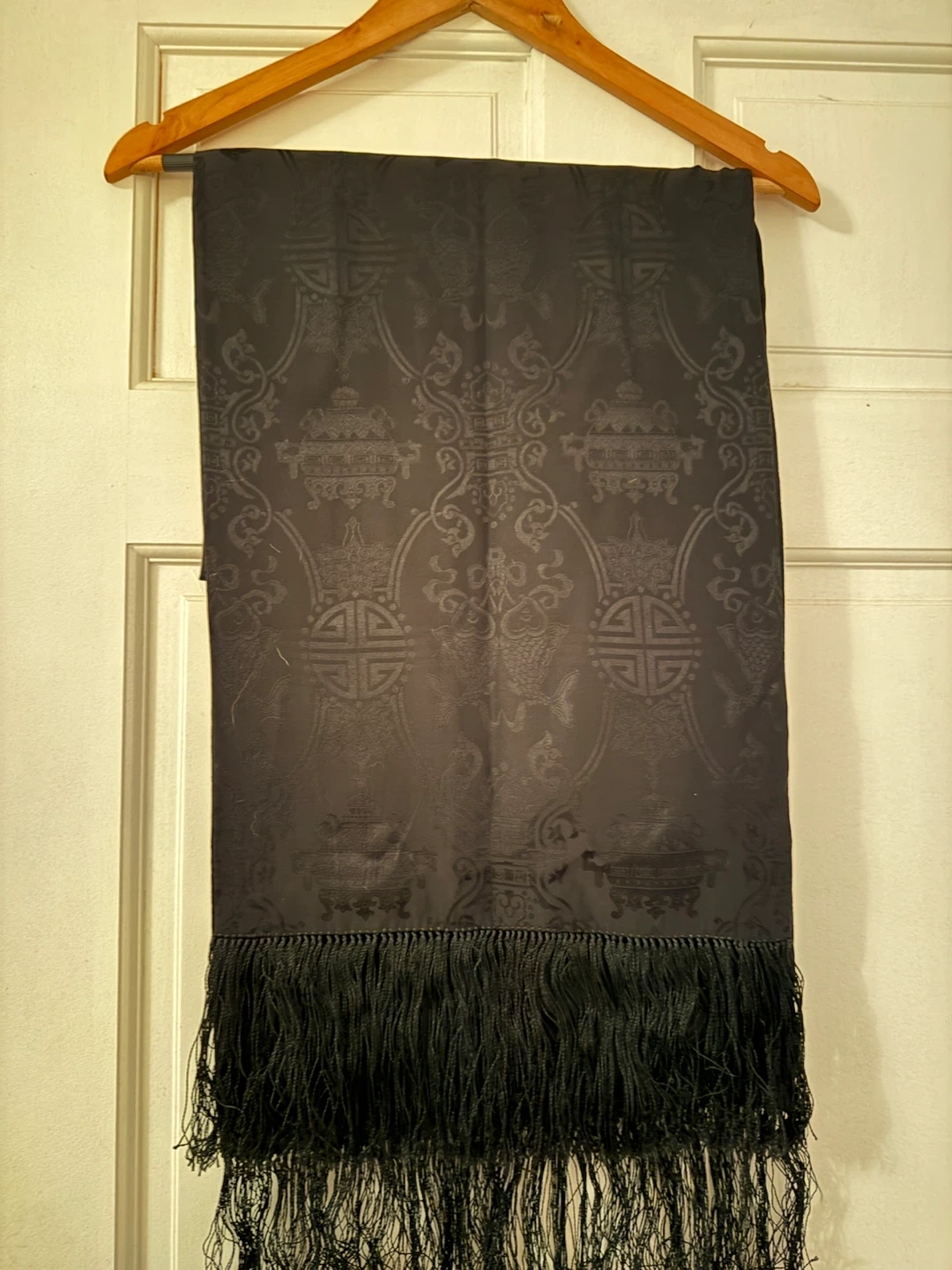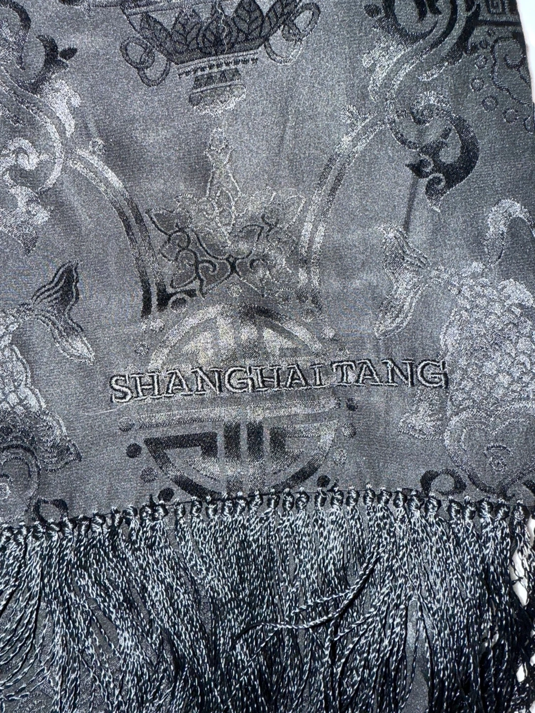 308Selling a beautiful black scarf from Shanghai Tang! It has a lovely pattern and fringe detailing, perfect for adding a touch of elegance to any outfit