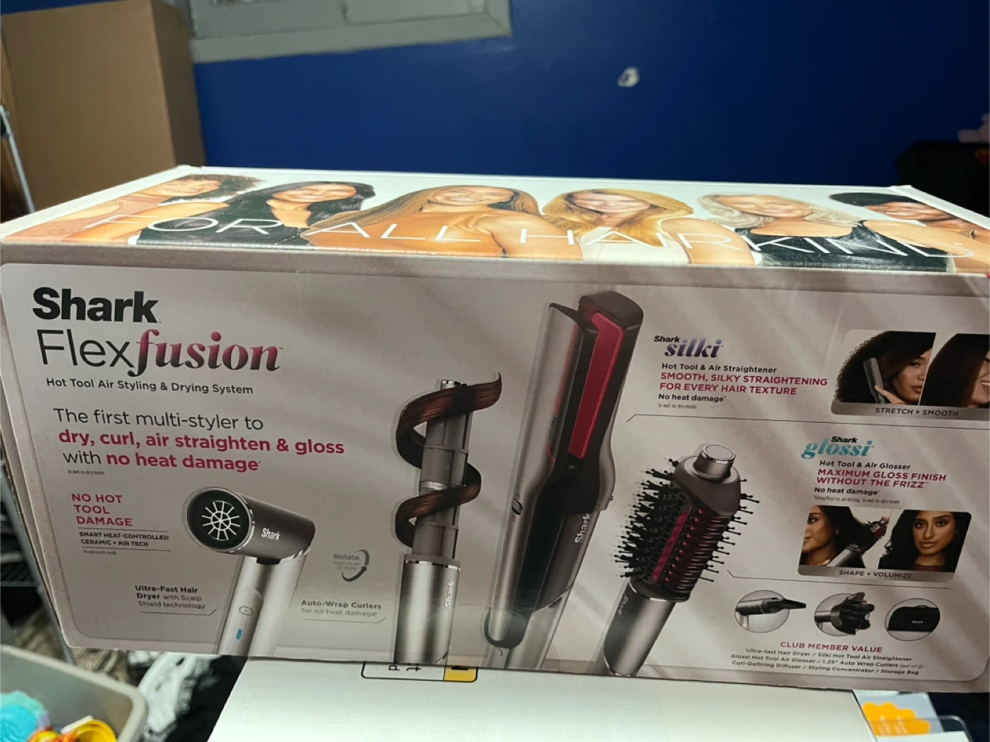 80I'm selling a Shark Flexfusion Hot Tool Air Styling & Drying System! It's the first multi-styler to dry, curl, air straighten & gloss with no heat damage. It features smart heat-controlled ceramic air tech, an ultra-fast hair dryer with scalp shield technology, and auto-wrap curlers for no heat damage. It also includes the Silki Hot Tool & Air Straightener for smooth, silky straightening for every hair texture and the Shark Glossi Hot Tool & Air Glosser for maximum gloss finish without the frizz! This set also includes a curl-defining diffuser, styling concentrator, and storage bag