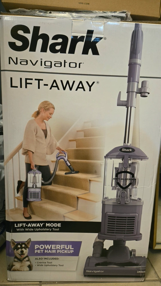 Selling a Shark Navigator Lift-Away vacuum cleaner. It features Lift-Away mode with a wide upholstery tool, perfect for tackling stairs and furniture. It's also great for pet hair pickup! Included are a crevice tool and a wide upholstery tool. The box is included.